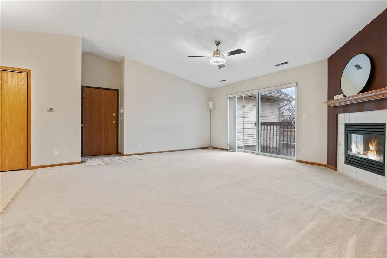 Live in the Penthouse. Enjoy top-floor living in this charming 900 sq. ft. condo with vaulted ceilings and a cozy gas fireplace. This east-facing unit stays cool in the afternoon while offering fantastic views of a nearby sports complex. The kitchen shines with newer appliances, including a Bosch dishwasher, making meal prep a breeze. Step outside to your private deck—a perfect spot for morning coffee or unwinding after a long day. Additional perks include: One-car detached garage Low $160/month HOA fees ($300 startup) Quick possession possible Pet-friendly (2 cats allowed, no dogs) Why rent when you can own? Easy to show—schedule your tour today