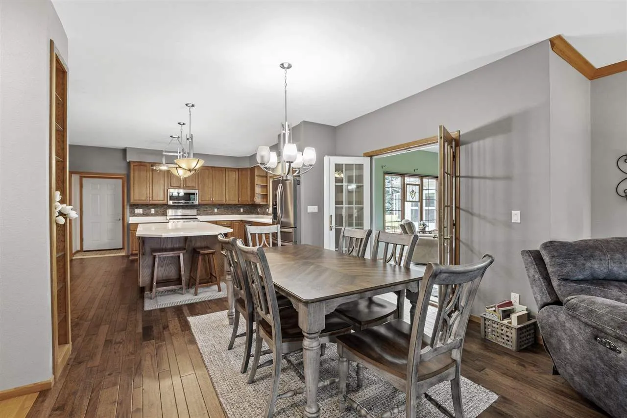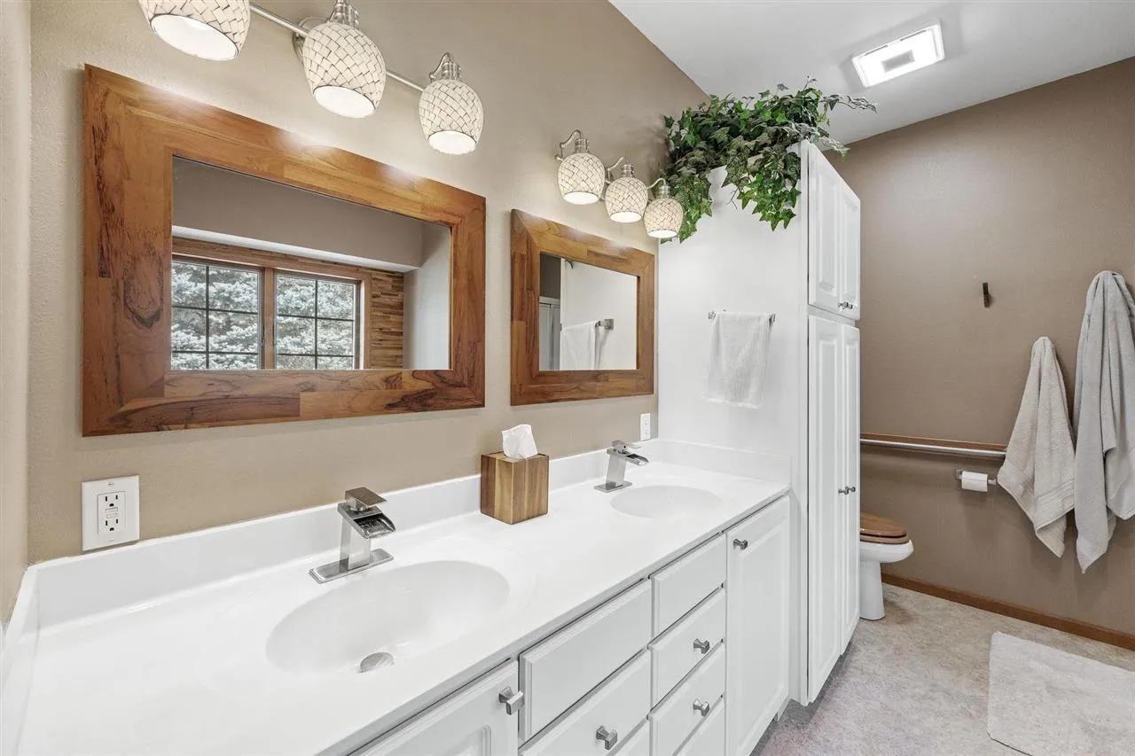 This Boyd Crosby built home is nestled in the Iowa City community. Ranch-style zero entry residence combines comfort, convenience, making it easy to age in place. The main level offers over 2,300 square feet with an open layout, anchored by a spacious living room with a gas fireplace. The kitchen includes an island, pantry, and combined dining area as well as a formal dining room and four seasons room. The primary suite is a private retreat featuring a nicely sized private bathroom with a jetted tub, and the laundry room right off of the primary suite! Designed for ease of living, all essential spaces are located on one level. The finished walkout lower level expands the home with 1000+ sqft (partially finished) featuring a bar, wine cellar, recreation room, and second fireplace, providing an inviting setting for gatherings. Outdoor amenities include a large deck, patio, gazebo and hot tub, all overlooking a spacious lot with mature surroundings. Built in 2000 and offering a little over 3,100 total finished square feet, this property balances everyday functionality with unique spaces for leisure and entertainment.