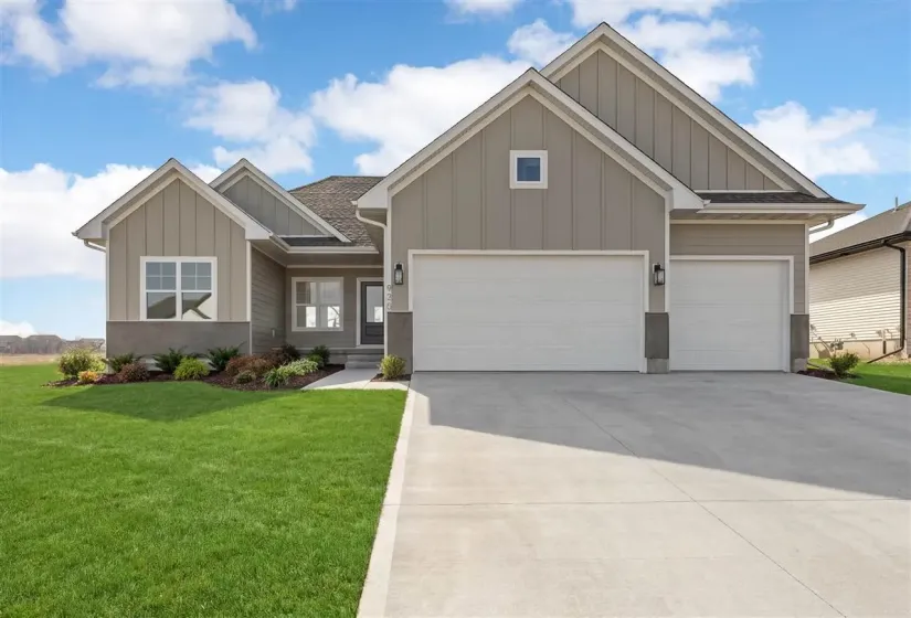 Beautiful new construction home with 4 bedrooms, 3 bathrooms, and optional flex room in the basement. The main level features an open floor plan with cathedral ceilings and fireplace. The gourmet kitchen, complete with a large island and pantry, is perfect for cooking and gatherings. Enjoy relaxing on the deck off the back, ideal for morning coffee or evening barbecues. 2 Bedrooms and 2 bathrooms on the main level. The primary bedroom features a walk in closet and spacious tiled shower. The finished basement includes an unfinished room for storage or future customization, 2 Bedrooms, and a full bathroom. Wet bar can be chosen as an upgrade to the space. Located in the vibrant North Liberty Greenbelt Subdivision, this home blends modern design with functional living. Schedule your tour today! Estimated completion date Spring 2026.