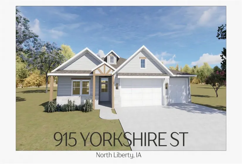 Beautiful new construction home with 4 bedrooms, 3.5 bathrooms, and optional flex room in the basement. The main level features an open floor plan with cathedral ceilings and fireplace. The gourmet kitchen, complete with a large island and pantry, is perfect for cooking and gatherings. Enjoy relaxing on the deck off the back, ideal for morning coffee or evening barbecues. 2 Bedrooms and 2.5 bathrooms on the main level. The primary bedroom features a walk in closet and spacious tiled shower. The finished basement includes 2 Bedrooms, 1 Full Bathroom, option flex room, and a large unfinished space for storage. Located in the vibrant North Liberty Greenbelt Subdivision, this home blends modern design with functional living. Estimated completion date: Spring 2026.
