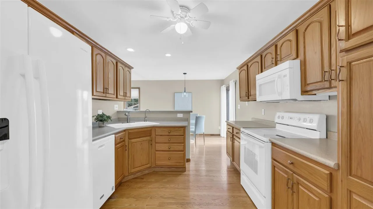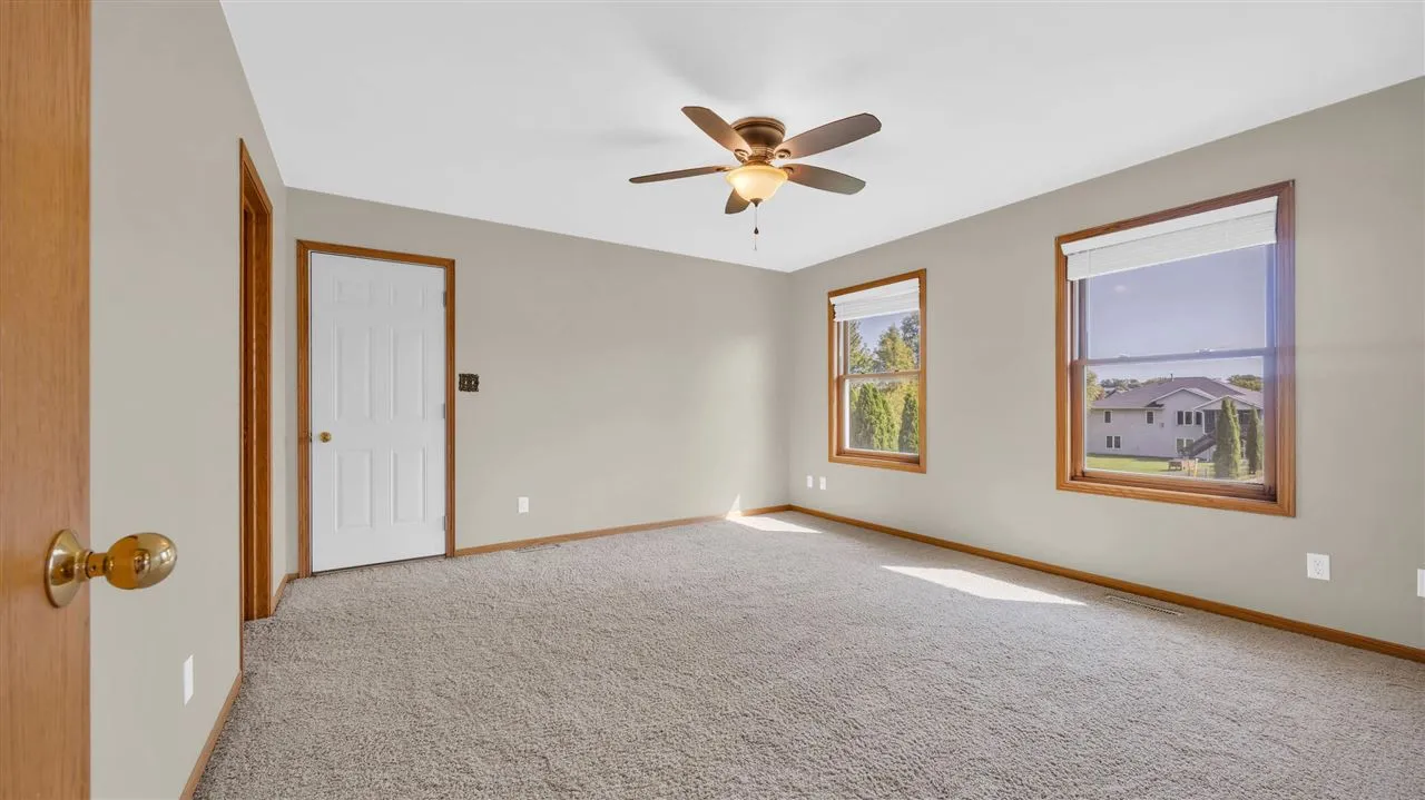 A brick split-foyer home in a prime North Liberty neighborhood close to everything. Inside, the split foyer layout is open and welcoming. With stairs tucked to the side, there’s more room for guests as they arrive. The staircase leads to a spacious living room surrounded by windows. Vaulted ceilings further expand the living area. A sliding glass door is off the dining room and opens to a freshly painted back deck. Making it easy to grill out or dine outside. In the kitchen: a breakfast bar, plenty of counterspace, everything within reach for prepping, cooking, or serving. The main level has three bedrooms, including the primary ensuite – large enough to fit a king-size bed plus additional furniture. A private exterior door gives you an easy retreat to the outdoor deck for simple convenience and enjoying quiet mornings with coffee in hand. Downstairs is a bonus living room made for game day watch parties, or movie nights in. There’s an additional bedroom, full bath and a non-conforming room with a window that can be whatever you need, an office, exercise room or playroom. Outside, walk out to a grassy, fenced backyard. Mature landscaping and trees are parklike. A bike path runs alongside the home connecting two neighborhoods and leads to the elementary school. Minutes to Coralville Lake and the park.