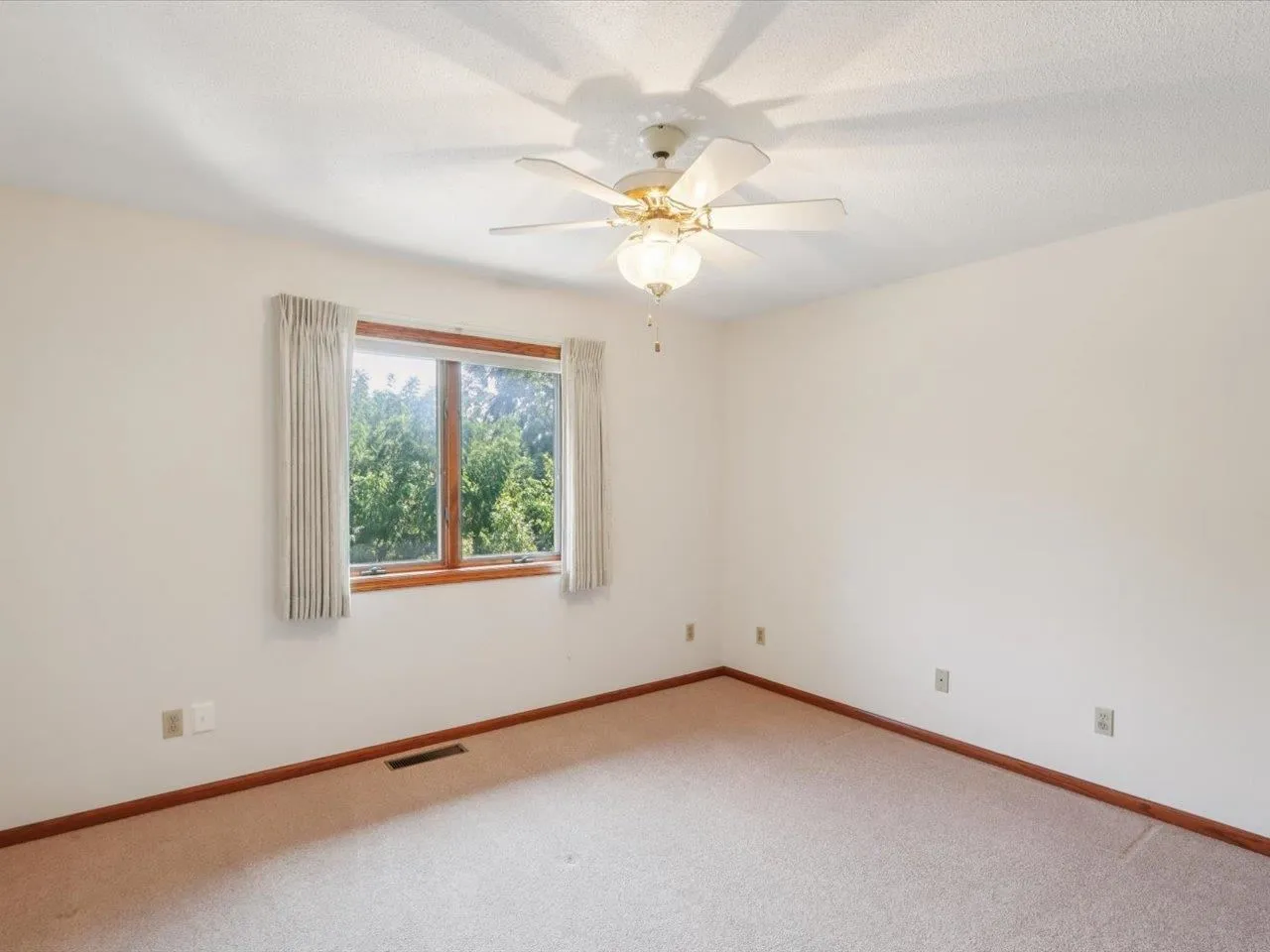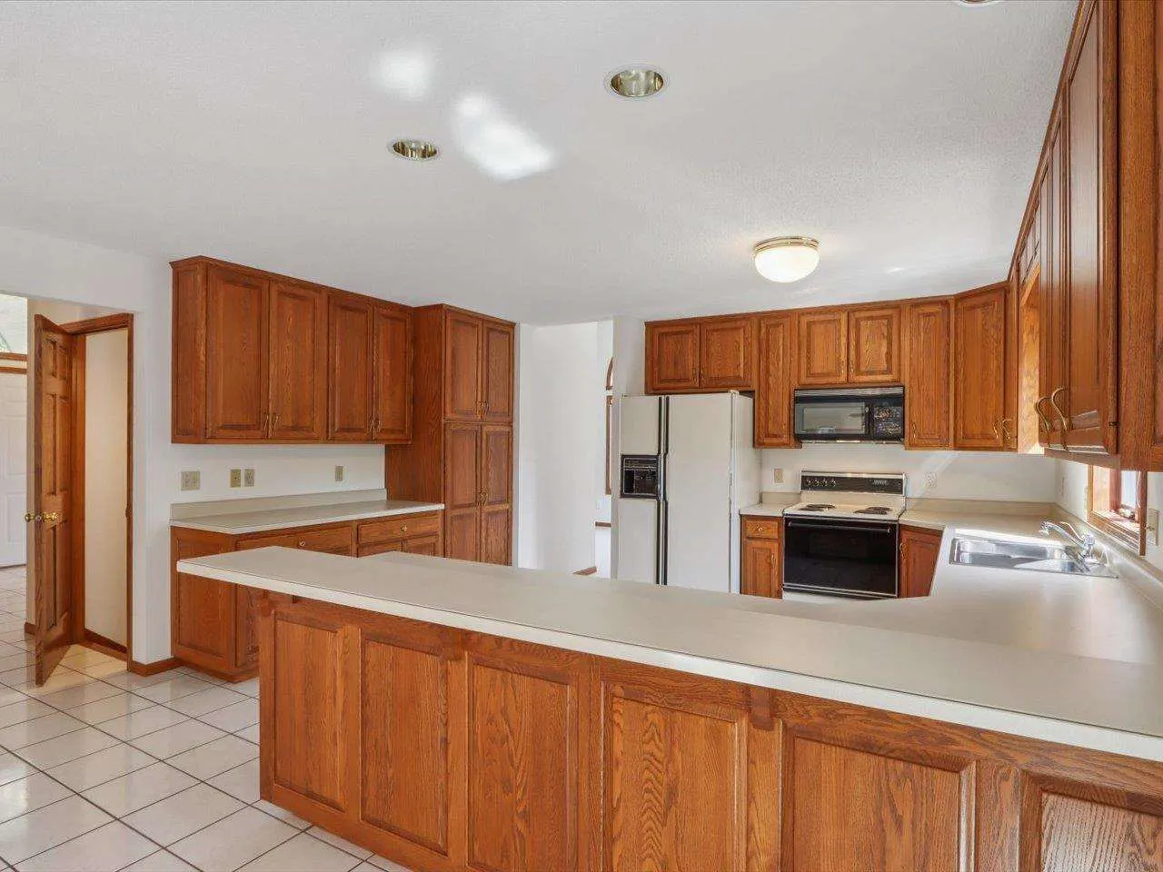 Set on a cul de sac on Iowa City’s east side, this McCreedy Taylor built home offers generous scale and solid construction. From the front porch one enters a grand foyer leading to a formal living and dining room with vaulted ceilings and built in cabinetry. Large windows throughout, including early 1990s half moon designs, bring natural light and a sense of drama. The spacious kitchen provides abundant cabinets, counter space, and a pantry with built-in spice racks, connecting to a breakfast area and large family room with gas fireplace and built ins. A three season room extends living to the outdoors. A half bath, laundry room, and attached three car garage complete the main floor. Upstairs are four bedrooms and two full baths, including a guest bath with double vanity. The primary suite offers exceptional size with a walk in closet and ensuite. The walkout lower level adds a massive recreation or second family room, a full bath, and an unfinished room with sliding glass doors. The home feels private with wooded ravine views, yet remains close to east side amenities, downtown Iowa City, and Hickory Hill Park’s east entrance. This property has steel siding and an alarm system. This property is held in an estate and is sold as is.