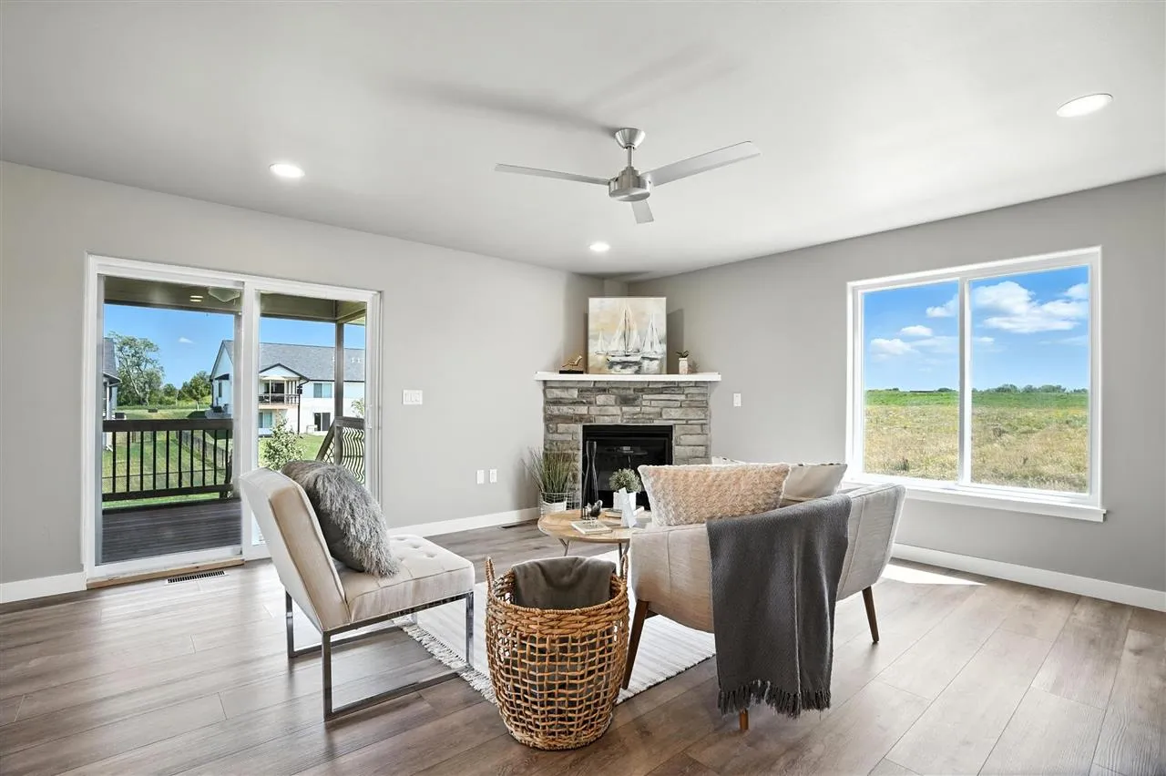 New construction multi-level home in a highly desirable location! Featuring 3 bedrooms and 3 bathrooms this home is ready for your needs. Open concept kitchen, dining and living room combination with a corner gas fireplace. The 10×10 covered deck off the main living space expands the space to enjoy the impeccable area. The primary suite is located on the upper level with a walk-in closet and full bathroom. Another bedroom and full bathroom are located on the upper level. In the finished lower level you will find a family/rec area to enjoy. Separate laundry room and another bedroom and bathroom are also located in the lower level. Located in the sought-after Kalona SouthTown development, this home offers a perfect blend of modern living and natural surroundings. With nearby nature trails, golf course, ponds, a beach, and parks, this community provides a unique opportunity to embrace the outdoors while enjoying all the comforts of a brand-new home!