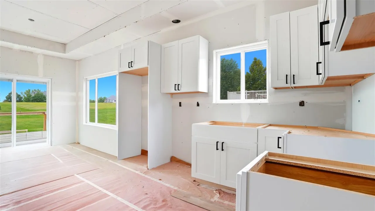 Popular and inviting home in Whispering Pines! This brand-new zero-lot home blends modern design with everyday comfort. Offering three bedrooms and two bathrooms, the open-concept layout is ideal for both entertaining and everyday living. The kitchen showcases a center island, sleek black stainless-steel appliances, quartz countertops, and matte black fixtures and hardware. The living room features an electric fireplace with a stone surround for a cozy focal point. Durable LVP flooring spans the main living areas with plush carpet in the bedrooms. Conveniently located main level laundry. The finished daylight basement brings in plenty of natural light and includes a spacious family room, an additional bedroom, and a full bath. Step out to the 12×12 deck—perfect for morning coffee or evening get-togethers. A 2-car attached garage completes this stylish and functional home—target completion date: December 2025.