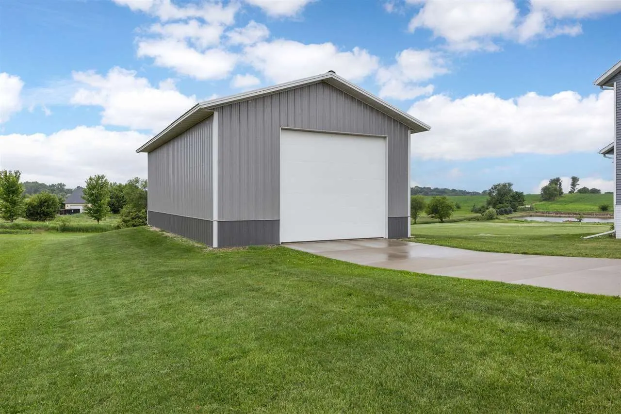 This beautifully designed 4 bedroom ranch sits on 1.65 acres, offering the perfect blend of comfort, space and functionality. The home features an extra deep 3 car garage has 8′ doors, 2 floor drains, heater, utility sink and a 50′ x 28′ outbuilding with a 14′ overhead door- ideal for RV storage, workshop or hobby space. Inside, the open-concept layout boasts a kitchen made for entertaining, complete with a 8.6′ x 4′ island and walk-in pantry. The sun-filled living room features large windows that frame the peaceful country setting. The primary ensuite is a true retreat with a double vanity with additional cabinet storage, a tiled walk-in shower and walk-in closet. Practical laundry/mudroom with extra storage. The expansive lower level family room offers even more living space and includes a walkout to the patio & yard. Enjoy outdoor living from the covered porch/deck while taking in the scenic views. Conveniently located in the Corridor, just 15 minutes to Cedar Rapids, 10 minutes to Amana and 25 minutes to Coralville.