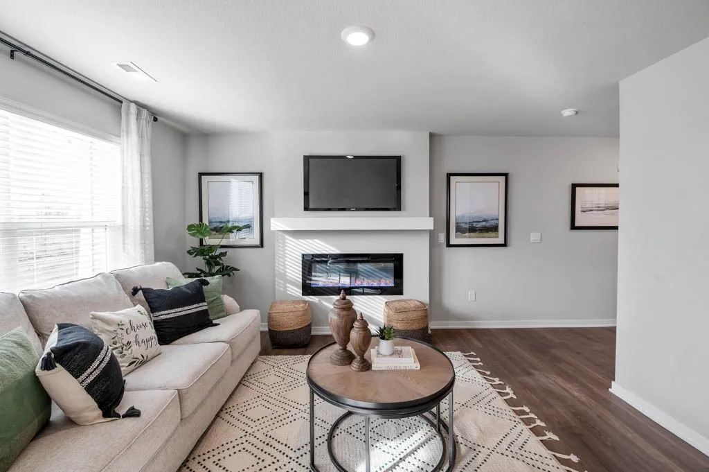 Welcome to the Sydney, a two-story townhome in Prairie Village Townhomes – offering 3 bedrooms, 2.5 bathrooms, and 1,511 sq. ft. of thoughtfully designed space with appliances included. Step through the foyer into a bright, open-concept main level that flows seamlessly from the kitchen to the dining and great room, complete with a cozy electric fireplace. The kitchen shines with white cabinetry, stainless steel appliances, and a large island perfect for cooking and entertaining. Upstairs, the primary suite features a walk-in closet and en-suite with dual vanities and a walk-in shower. Two additional bedrooms with large closets, a full bathroom, and an upstairs laundry area provide flexibility and convenience. All D.R. Horton homes include smart home features. Visit today and see why the Sydney is built for the way you live! Ask about builder incentives with preferred lender. Photos similar to.