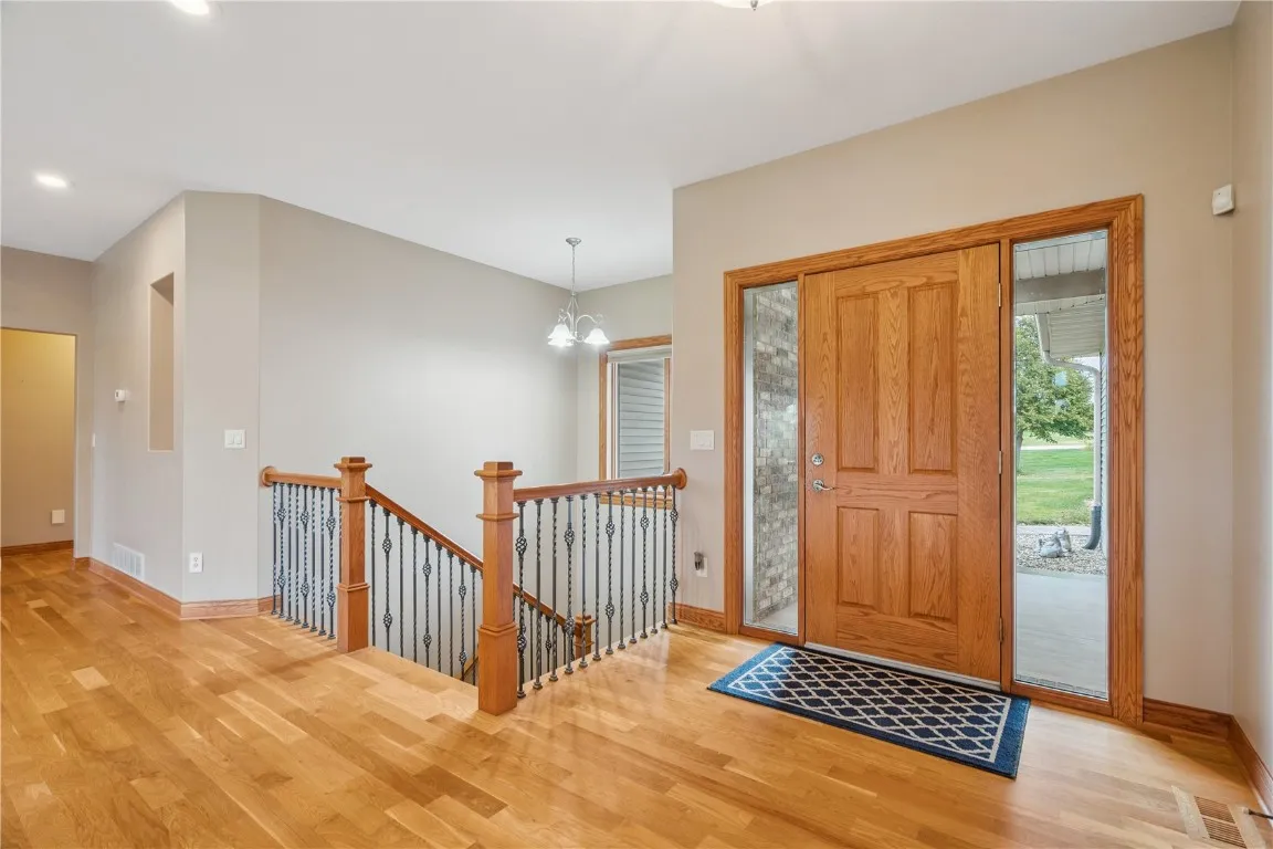Set on 2.45 serene acres with a garden and a 45′ x 45′ outbuilding, this beautiful home blends country space with refined finishes. Inside, you’ll find over 3,500 sq ft of finished living area featuring hardwood floors, heated flooring, and an attached oversized 2-stall garage with cabinet storage and convenient stairs to the basement. The main level offers three bedrooms, a dedicated dining area that frames an amazing view, and a kitchen designed for gatherings—complete with a large pantry and an entertainer’s island. The private primary suite includes a spacious bedroom and a bath with a jetted tub and separate shower.
