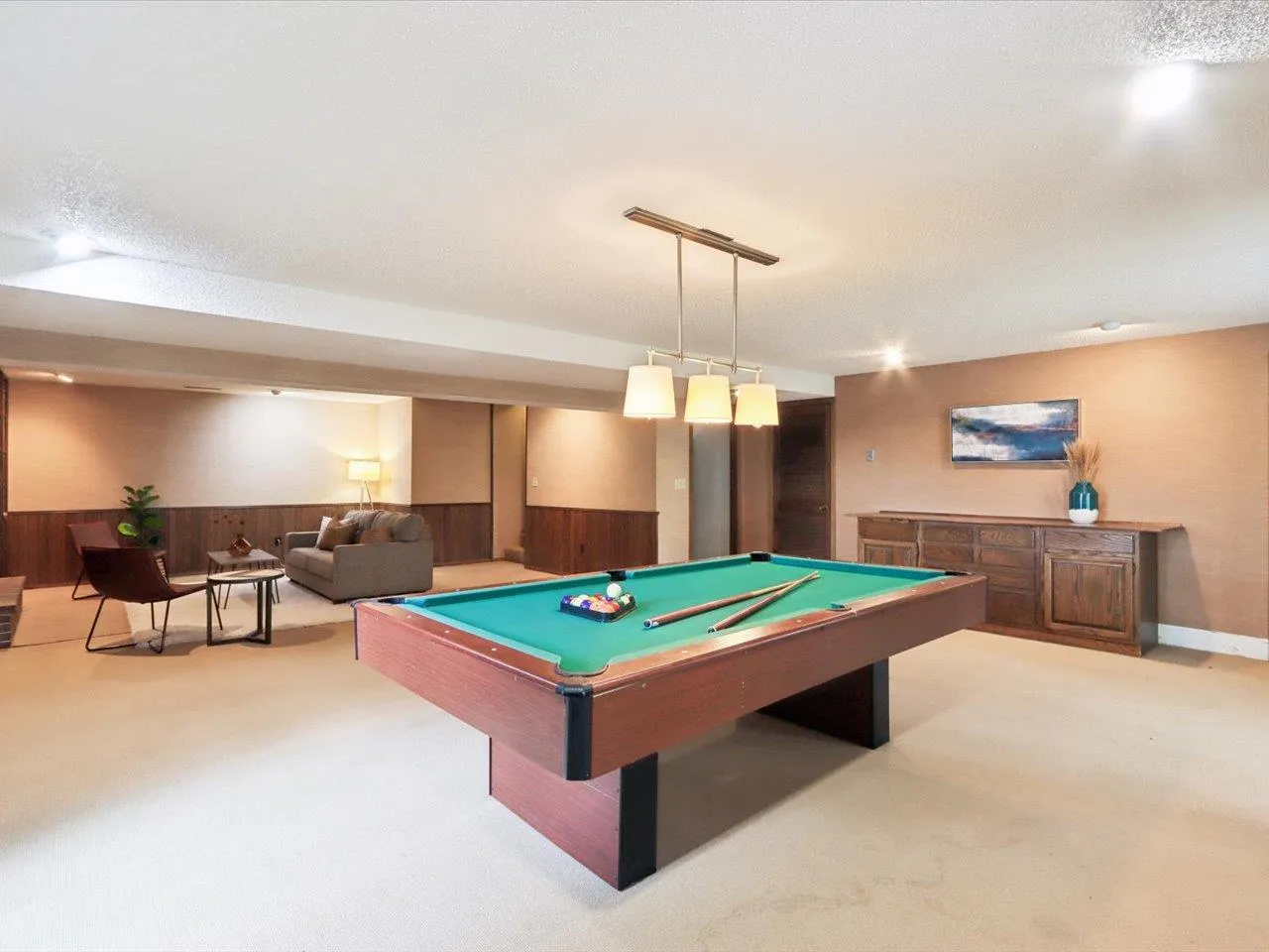 West side Contemporary Ranch home with asymmetrical front facade featuring a low pitch gable roof, large windows & skylights that bring natural light into the home with attached two car garage. New roof in 2021 with many more recent updates (see feature sheet). This contemporary two-story home has wonderful gathering spaces featuring vaulted ceilings on the main floor – large main floor living room with gas fireplace framed by mahogany wood from floor to ceiling, the kitchen design includes a dining table area, a more casual island eating area, gas range/oven, & several prep areas, pantry, access to the recently updated deck – wonderful for entertaining, plus the main floor features a half bath & a Primary Suite with ensuite bath. The second floor features a loft area that could be a library, a meditation space, a playroom, then two additional bedrooms & a full bath. The walk-out lower level family room/rec room is spacious featuring a wood burning fireplace with gas assist lighting (cleaned & repaired in 2023 – not used since), built-in bookcases, pool table (stays with the home), a fourth bedroom & third full bath. Lower walk-out patio is framed & can be easily screened in. New cedar fence frames the large backyard with lots of established gardens & landscaping.