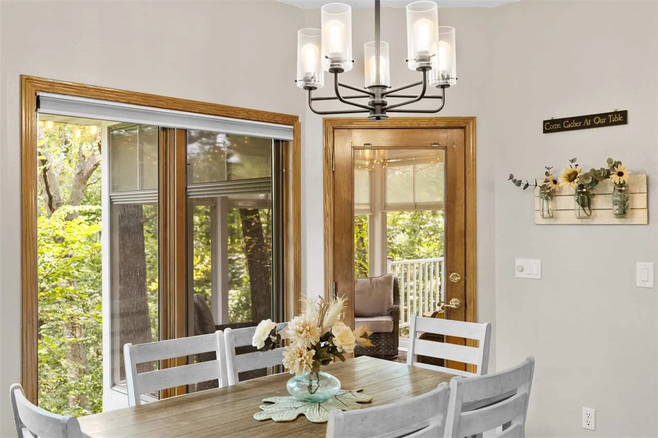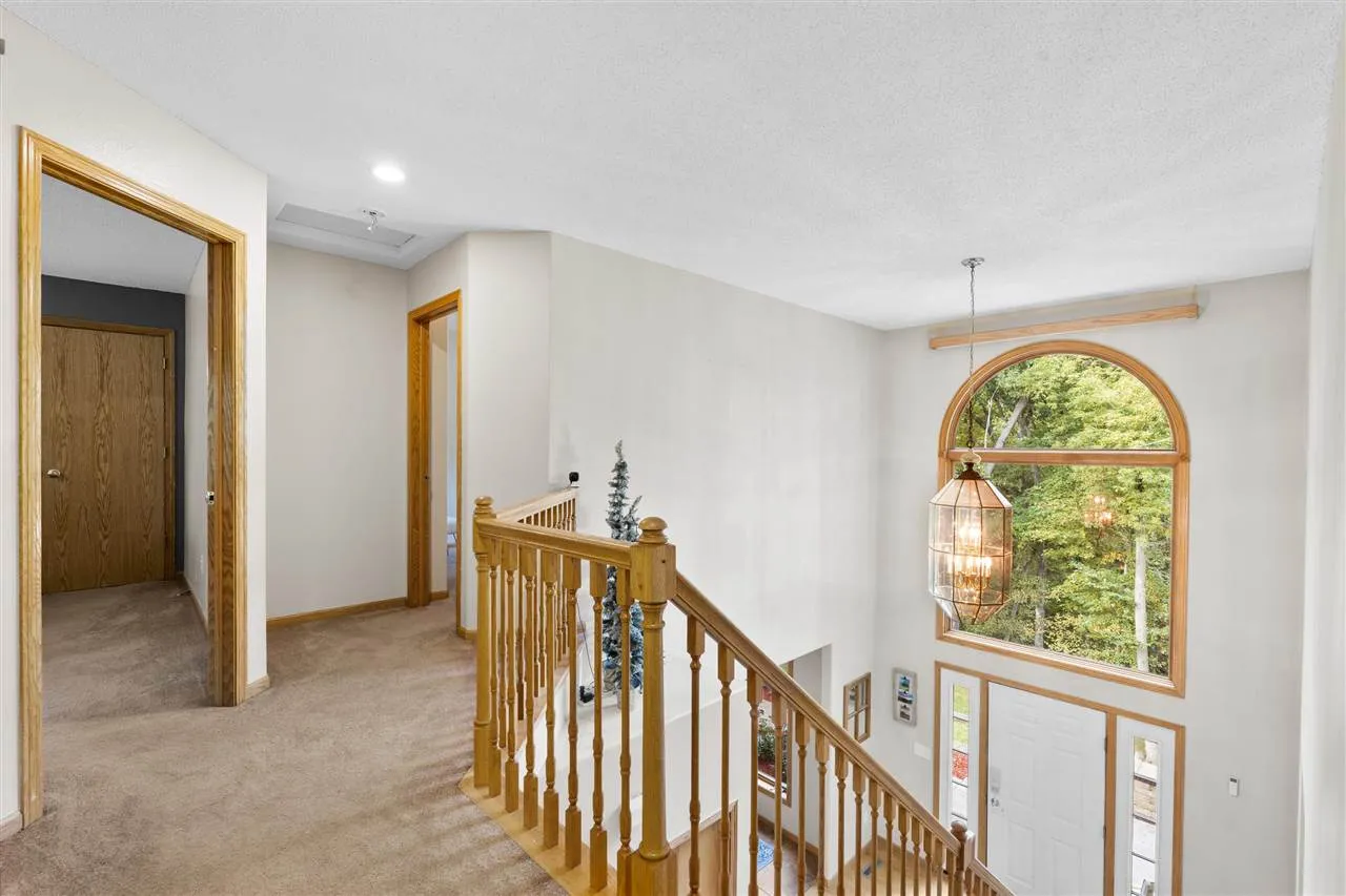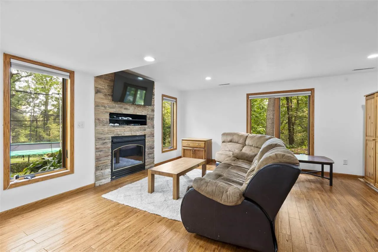 Discover your private retreat in the coveted Solon school district, situated on over 2 wooded acres just a short drive from both Cedar Rapids and Iowa City. This expansive home offers a true connection to nature, with large windows flooding more than 3,000 square feet of living space with natural light and providing tranquil, forested views from nearly every room. Modern updates meet cozy comfort in the eat-in kitchen, featuring quartz countertops (2023), a new dishwasher (2023), and a new refrigerator (2024). Curl up by one of two fireplaces, or enjoy a peaceful cup of coffee on the three season sunroom as you catch the morning sun. A spacious walkout lower level includes a family room and extra space for storage or a workout area. The attached three-car garage, with workshop space and new doors scheduled for mid-October, provides versatility and convenience