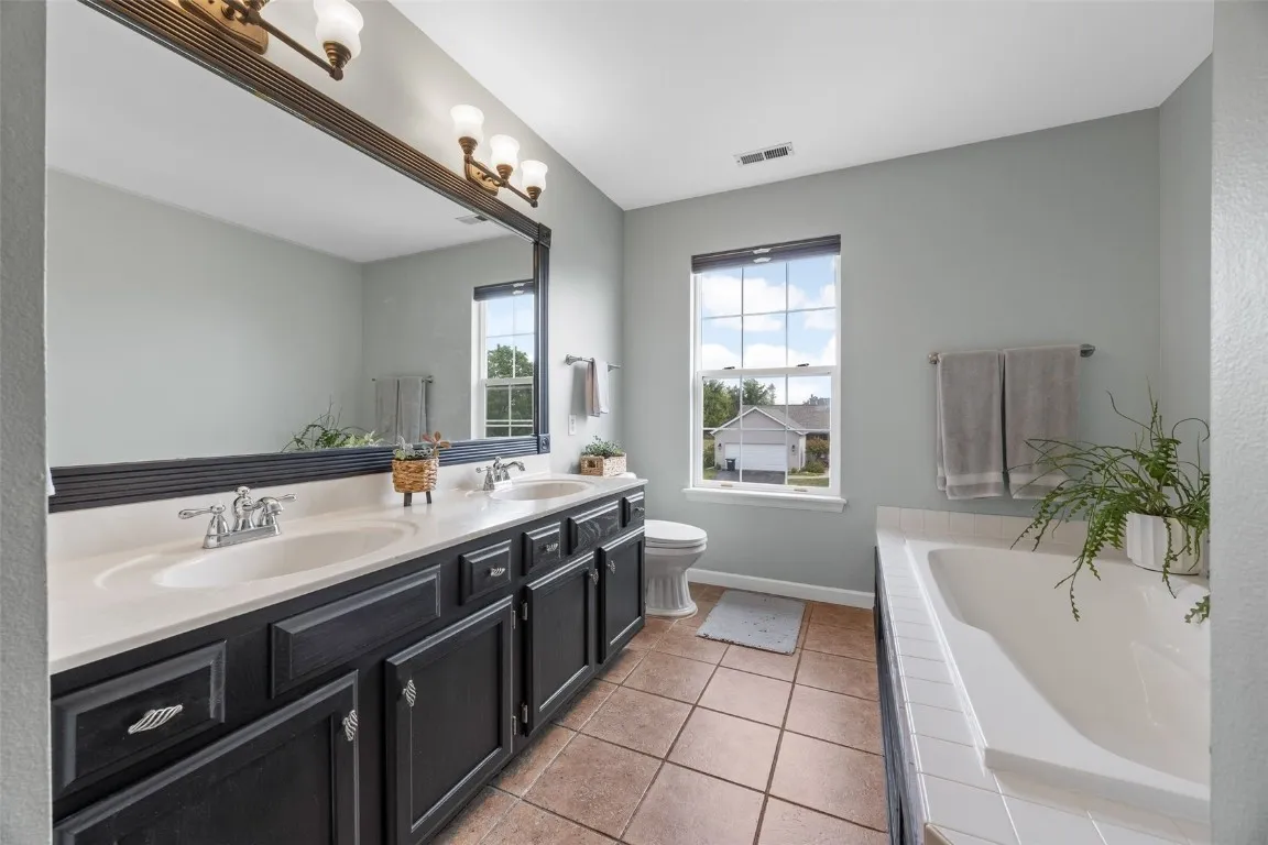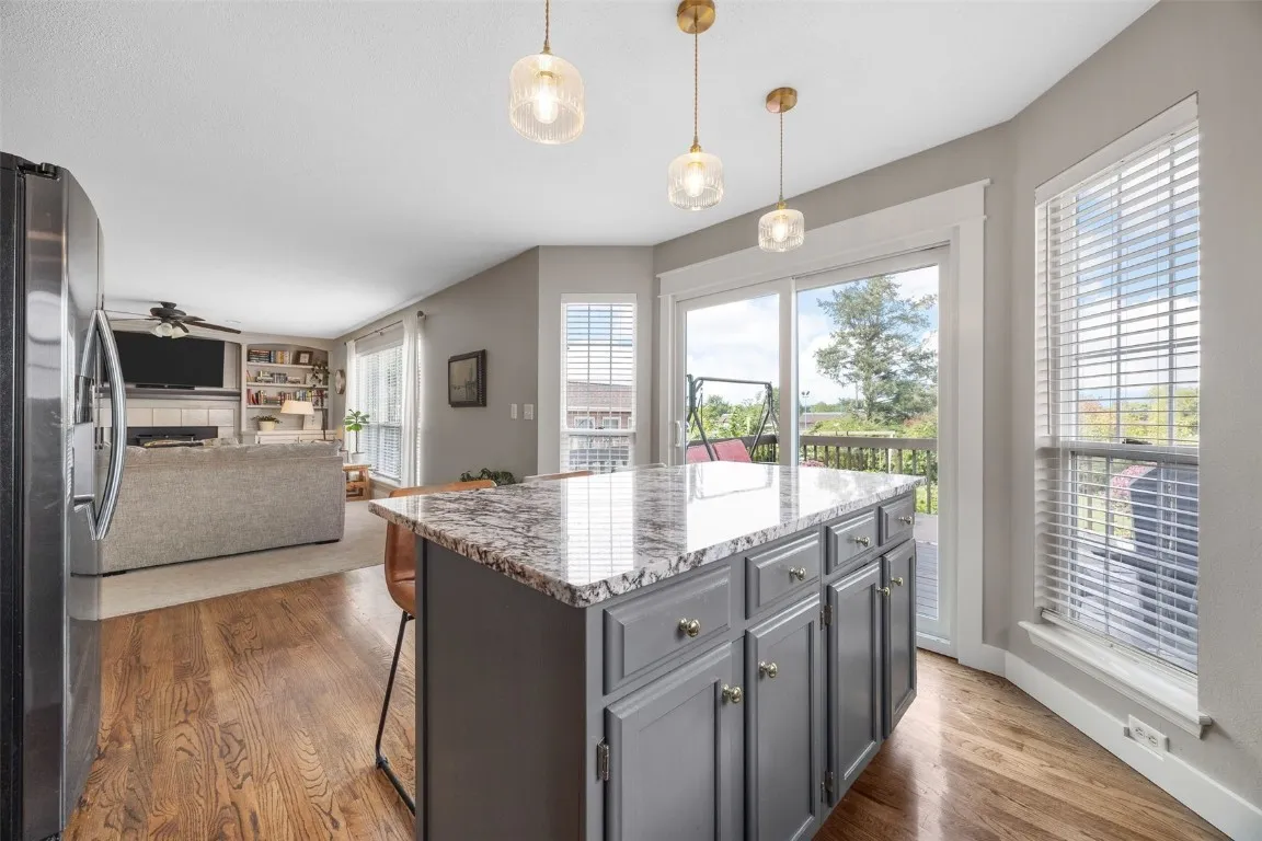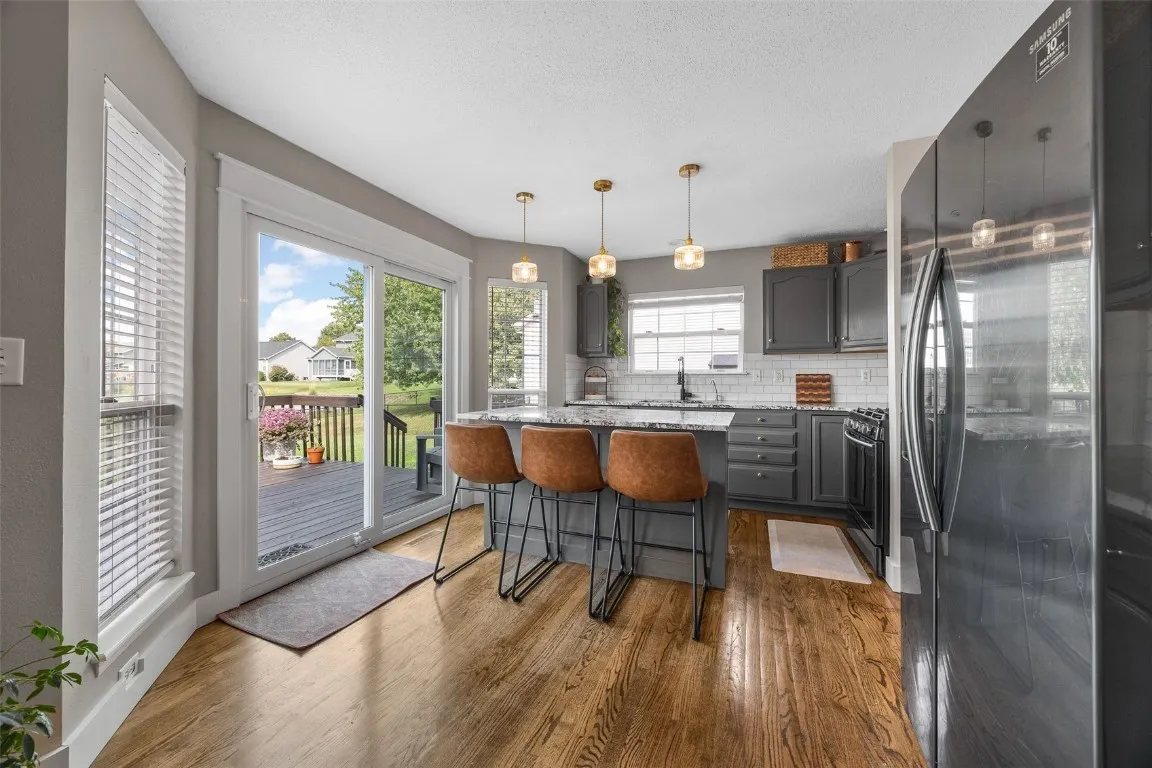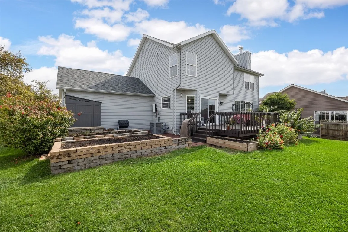 Superb two-story home with plenty of updates – both aesthetic & mechanical – that take this one to another level! Roof, furnace, sump pump, sliding door, & some appliances are all new within the last 4 years – plus solar panels paid off at closing, so you can bank on low energy costs for the future! Enjoy tastefully updated interior features like newer light fixtures & faucets throughout, Craftsman-style doors with black knobs, painted built-in’s around the living room fireplace, board & batten walls in the formal dining room, and darker hardwood floors underfoot. Kitchen with granite countertops, subway tile backsplash, gas stove, single-basin sink, & an island/breakfast bar for daily dining. Convenient half bath on main level, plus a drop zone off the 2-car garage entry. Upstairs, another updated full bath & 4 spacious bedrooms, including the Primary Suite with a pair of walk-in closets & a spa-like ensuite bath with tile floors, dual sinks, soaker tub, & separate shower. The lower level offers a 5th non-conforming bedroom (now used as an office), large rec room space, lots of storage areas, & a laundry room. This home backs to the Marion park & pool, and you’ll enjoy evenings on the large deck, tending your garden/flower boxes on the paver patio. Backyard playset stays, too! So much to appreciate here! Act fast and make it yours! October is National Breast Cancer Awareness Month. Listing agent will donate $200 to breast cancer research if this home goes pending in October.