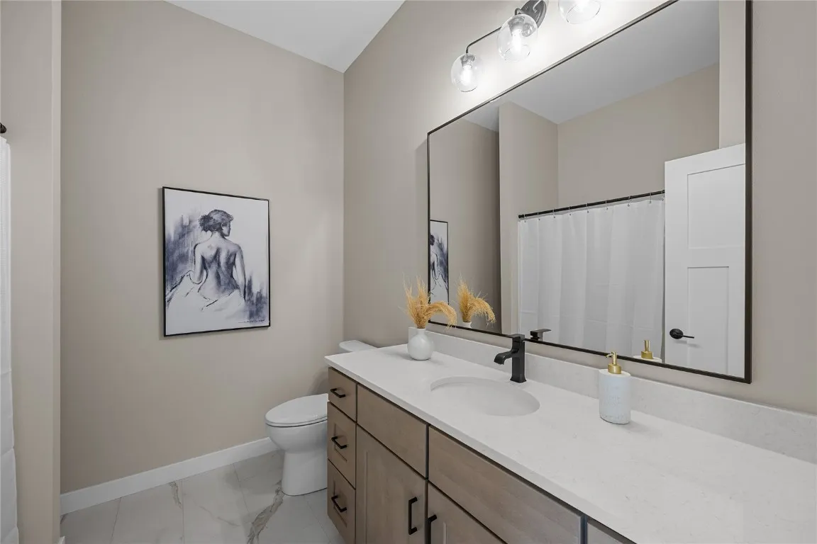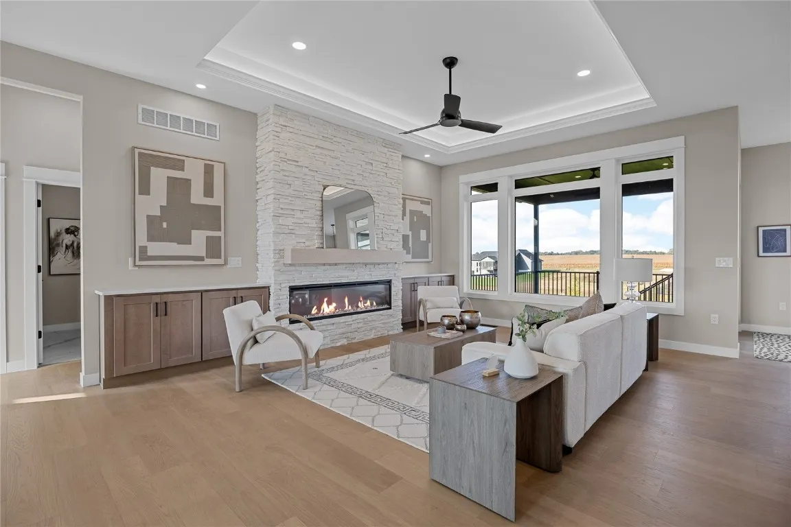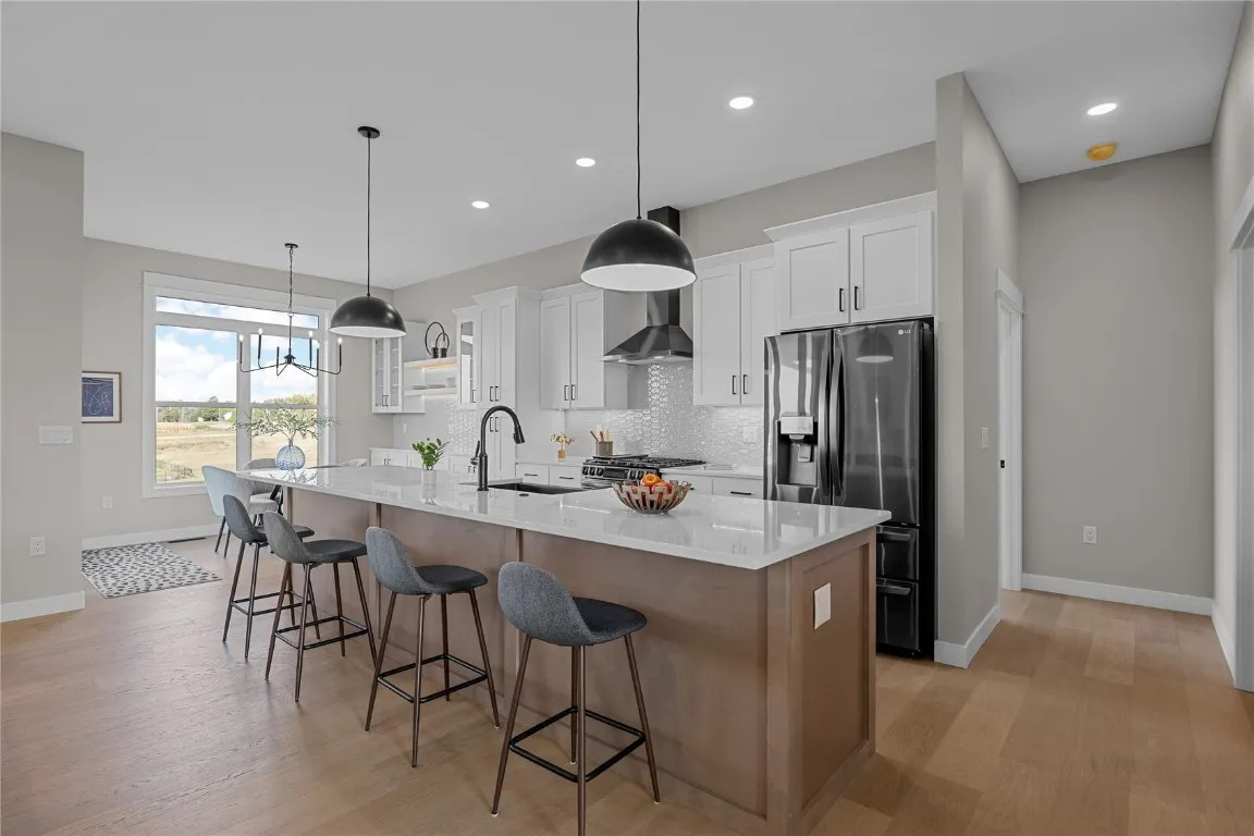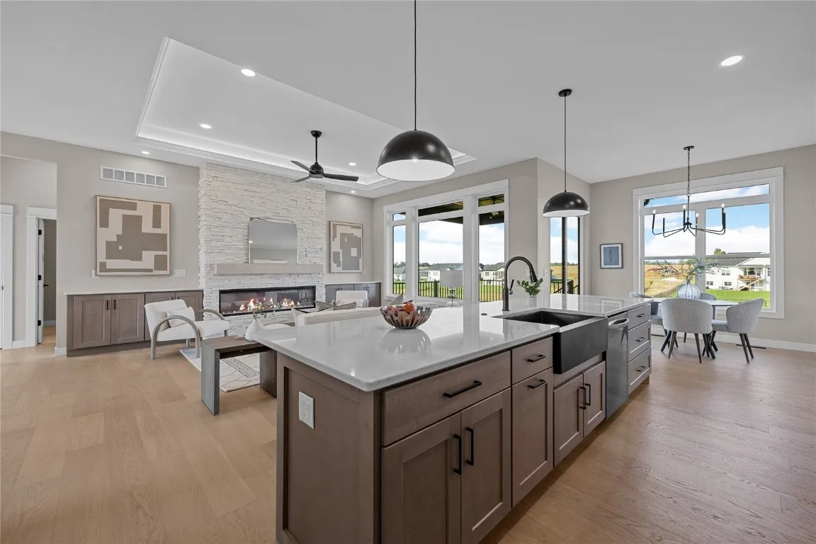 Stunning 2025 New Construction on Oversized Lot! This 5 bedroom, 3bath home (plus 6th non-conforming bedroom) offers thoughtful design and high-end finishes throughout. Enjoy 9’ ceilings with 10’ tray ceilings in the living room and primary suite, an open-concept layout, and a chef’s dream kitchen with walk-in pantry and tons of storage. The primary suite features a tiled shower, double vanity, enclosed toilet, and direct access to the laundry room through the walk-in closet. Cozy up by the fireplace with custom built-ins, or head outside to the covered composite deck and massive patio. The finished basement includes a wet bar and plenty of entertaining space. Topped off with an oversized 3-stall garage—this home truly has it all!