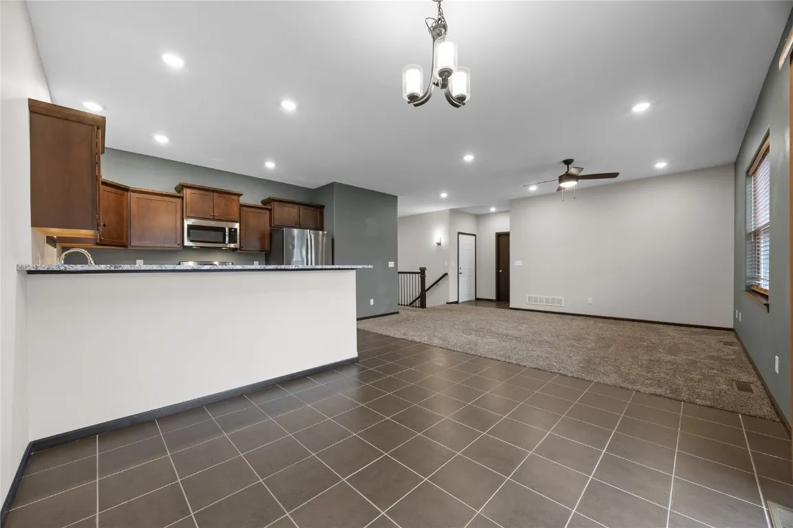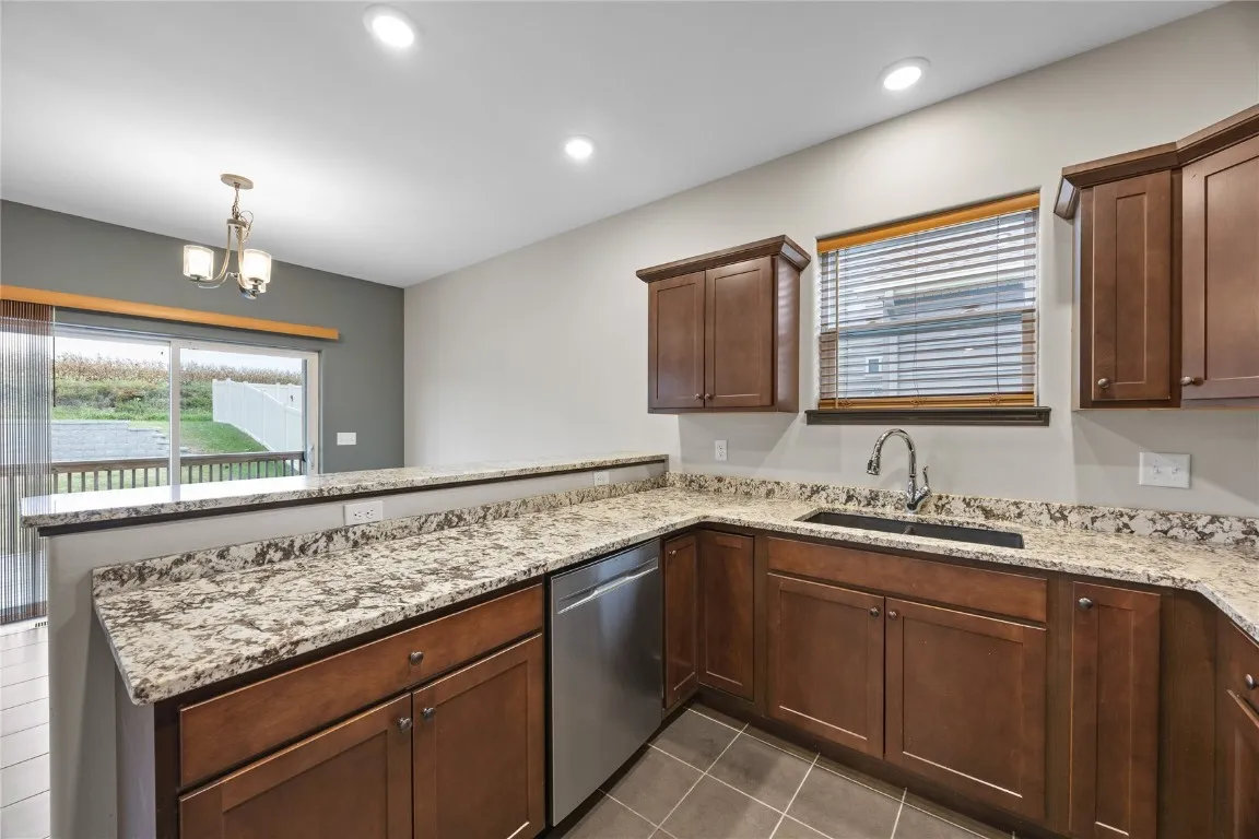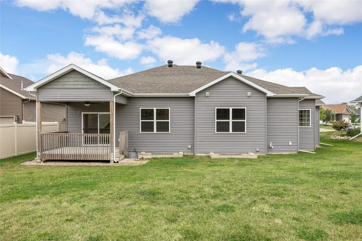 Fantastic Marion location, within minutes of UpTown, Hy-Vee, HWY 100, Lindale area, parks, trails, you name it! Beautiful 3-bed, 2-full bath, 3-car garage with unfinished lower level, already framed and plumbed with egress windows for easy potential to maximize square footage. The front two bedrooms share the wing with a full bathroom with shower/tub combo. The great room features cool neutral paint colors, soft carpet in the living space, tile flooring in the kitchen and dining space, which leads out to the covered wood deck with ceiling fan and backyard. Rich cabinets, granite countertops, stainless steel appliances and breakfast bar, make this eat-in kitchen the heart of the open-floor plan. The main-floor laundry is conveniently located next to the spacious primary suite, which highlights a spa like bathroom with dual sinks, a tub and separate tiled shower, and a walk-in closet. The lower level is a fantastic footprint, already plumbed and framed for a full bath and framed for storage/bonus space and additional square footage with 2 egress windows. Schedule your showing today, your dream home is move-in ready!