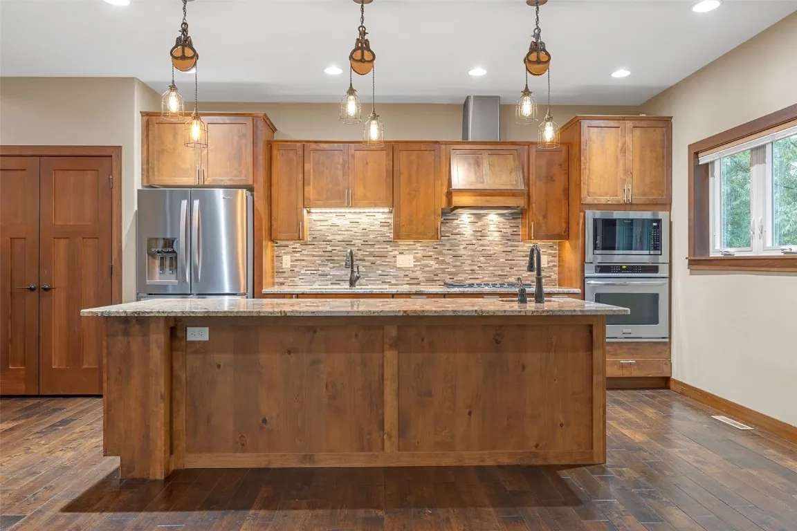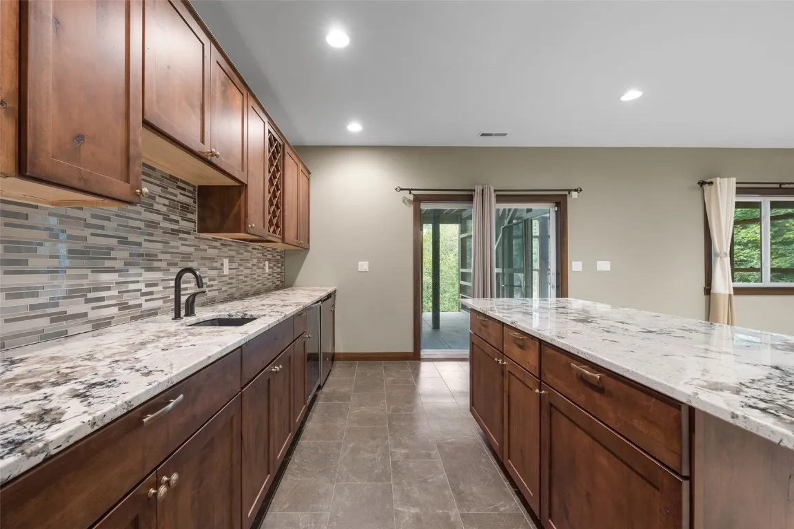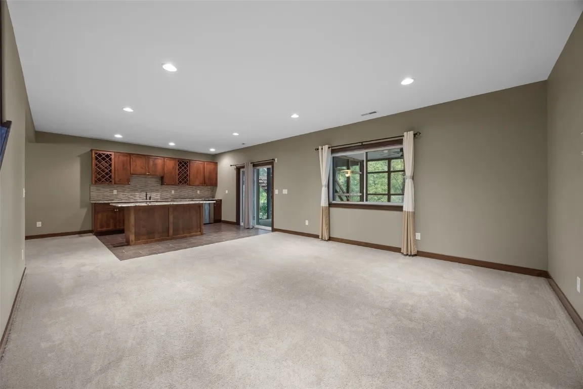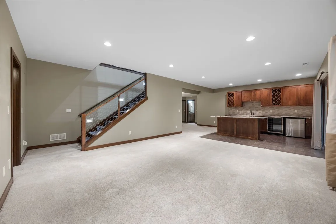 Quality-Built Ranch on Wooded Lot Near Xavier. Beautifully constructed and nestled on a private wooded lot near Xavier, this 5-bedroom, 3-full-bath ranch offers exceptional craftsmanship and thoughtful design throughout. The open floor plan features a stunning great room/sunroom with floor-to-ceiling windows, a two-sided fireplace, and high ceilings that create a warm and inviting atmosphere. The kitchen showcases quality wood cabinetry and flows seamlessly into the spacious dining and living areas. The main-floor primary suite includes a large walk-in closet and a custom-tiled shower. Additional highlights include solid wood doors, a large main-floor laundry room with abundant storage, and an oversized 3-stall garage complete with water and floor drains. The walkout lower level is designed for entertaining, with a theater area, family room, large bar, and generous storage space. Outdoor living is equally impressive with a screened porch, maintenance-free deck with steps to the backyard, and peaceful wooded privacy. This is a rare opportunity to own a meticulously maintained home combining comfort, quality, and serenity—all in a convenient location near schools, parks, and amenities. Plumbed for Central Vac only. Buyer to verify square footage