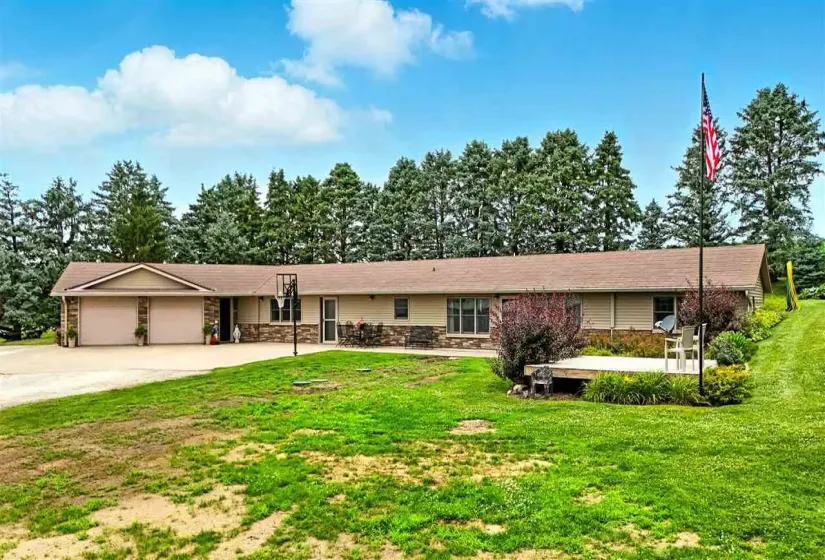 Exceptional Berm Ranch with Privacy, Outbuildings & Modern Updates – WACO School District Move-In Ready | 3 Beds | 2 Baths | Office | 2 Outbuildings | 45′ x 24′ Garage | New Septic Nestled just off a paved road and conveniently located near Hwy 218 in the WACO Community School District, this beautifully maintained and extensively updated berm-style ranch home offers the perfect blend of modern comfort, rural tranquility, and functional space. The home boasts a gorgeous, completely renovated kitchen (2021) featuring quartz countertops, new cabinetry, and updated flooring. Fresh paint throughout, modernized bathrooms, updated windows, siding, and a Decra steel roof with a 50-year warranty ensure long-term peace of mind. The open-concept floor plan includes a spacious family room, three bedrooms, two full bathrooms, and a dedicated office—perfect for today’s work-from-home needs. Step outside to enjoy the tastefully landscaped yard, a relaxing wood deck, and a front patio with sweeping views of the surrounding countryside. The property includes a massive 45′ x 24′ detached garage with abundant storage, plus two large outbuildings: Outbuilding #1: Features concrete floors, built-in cabinetry, partial heating, and was formerly used as a welding shop. Includes an overhead door, ideal for farm equipment