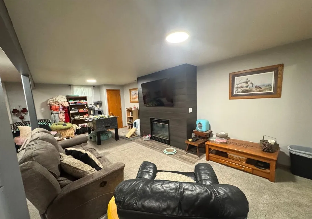 Inside, the kitchen shines with white cabinetry, quartz countertops, a gas stove with hood, and stainless steel appliances. The main floor offers three bedrooms, all with new LVP flooring, while the lower level features a spacious fourth bedroom, a second bathroom, a cozy rec room with a gas fireplace, and convenient laundry and storage areas.