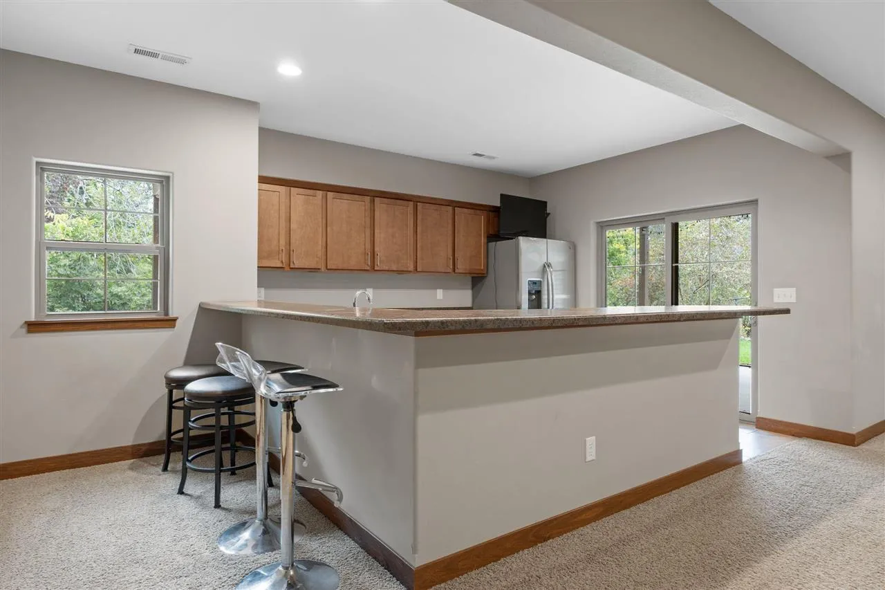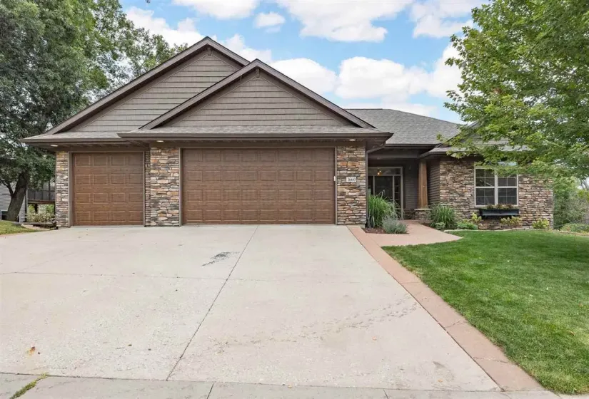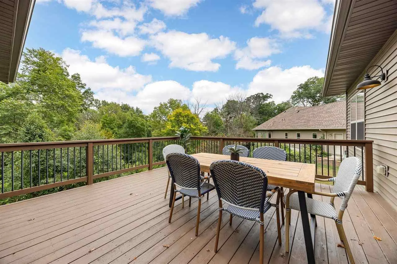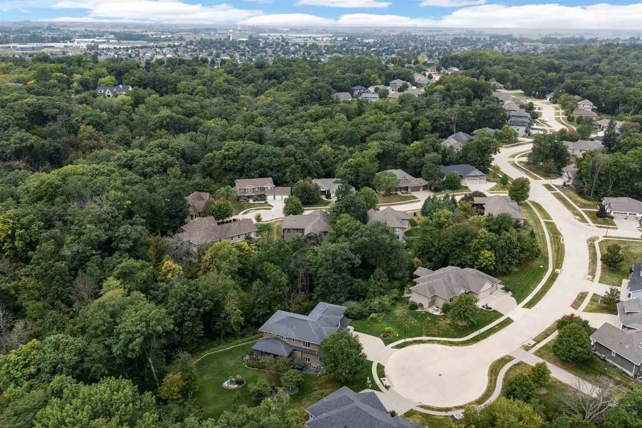 Wooded ranch home at the end of a quiet cul-de-sac in Cedar Springs. Warm and inviting, the open-concept design features 13-foot vaulted ceilings, rich wood floors, and fresh-painted walls. From the foyer, the living room opens to tree-lined views, anchored by a cozy fireplace with built-ins. The kitchen has brand-new GE stainless steel appliances, including a combination microwave/second oven, granite countertops, a center island, and a walk-in pantry. A sliding door leads to a fully refinished deck and screened porch with new screens. Just off the dining area is a private study with built-ins. The primary suite includes a dual-sink vanity, an 8-foot tiled shower, and a large walk-in closet that connects to the laundry room, which can also be reached through the mudroom. The walkout lower level is designed for entertaining. Large family room, 2nd fireplace, 11×14 wet bar with fridge, two bedrooms, full bath, and extra storage space. Outside, enjoy a covered patio that extends to an open area with a stone firepit, surrounded by mature trees, new sod, and expanded green space. Minutes to Coralville Lake, restaurants, and a short distance to the elementary school. Recent updates include partial roof and gutter replacements with guards after storm damage, along with a new garage entry door. New dishwasher in 2023.