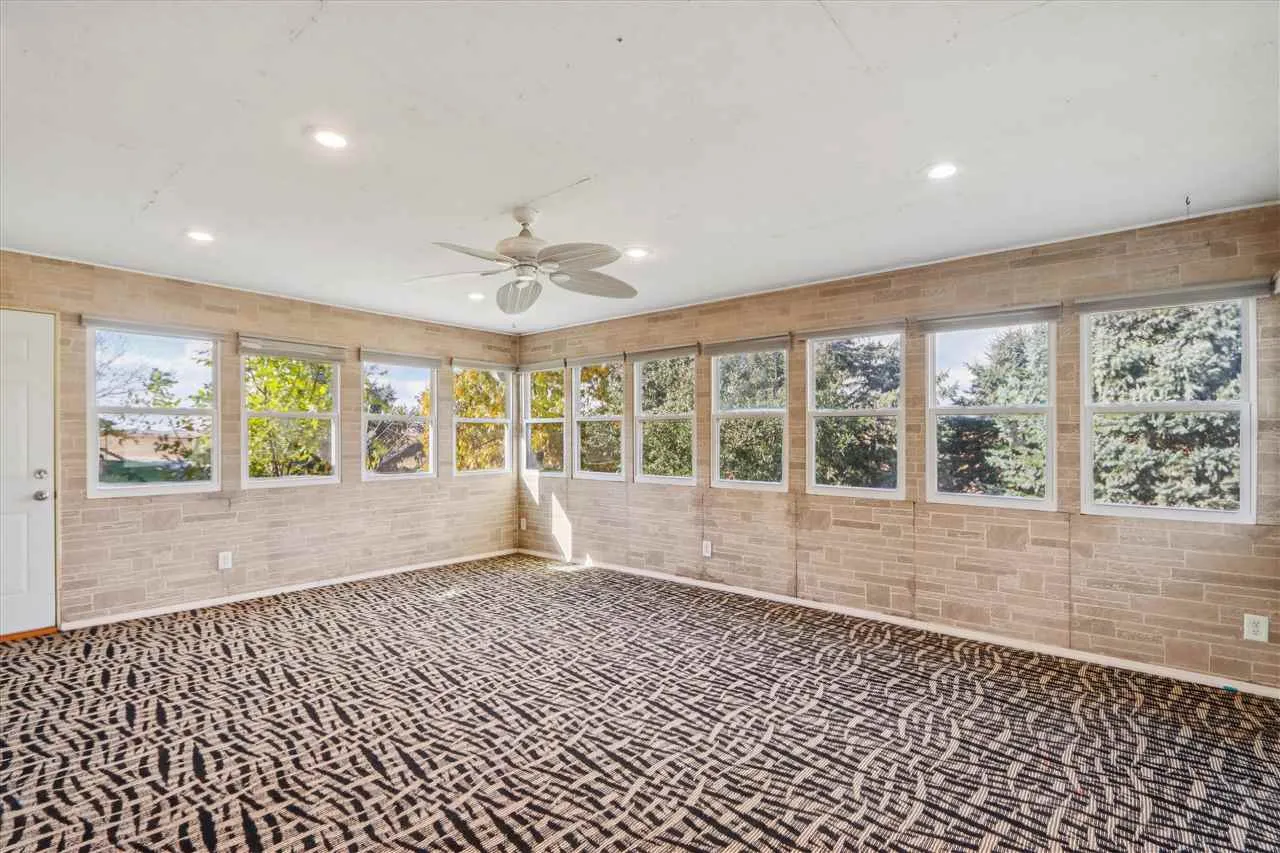 This acreage consists of a ranch-style home with great views of the countryside. The spacious living room features a picture window allowing plenty of natural light to fill the room. In the kitchen, you will find a functional space complete with appliances, a breakfast bar with seating for convenience, and a window above the sink that offers a scenic view. The adjacent dining space includes a slider that leads to a three-season room, providing an excellent spot to relax. The main level of the home comprises three bedrooms. The full bathroom on this level is equipped with a tub/shower, vanity, and storage closet for added convenience. The main level laundry area includes a washer and dryer, making daily chores a breeze. The lower level features a family room with a wood-burning stove, creating a cozy atmosphere. Additionally, there is a full bathroom with a stand-up shower and a 4th non-conforming bedroom. An attached, insulated garage with epoxy flooring and floor drain provides parking space and storage options. Other notable updates include BRAND NEW septic system, water softener in 2023, updated HVAC system, roof, and Andersen windows throughout the home, enhancing comfort, energy efficiency, and overall value.