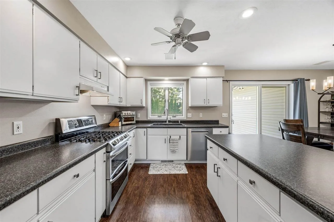 Rare find! An enormous .40 acre lot with a peaceful and private backyard tucked into a cul-de-sac on Iowa City’s west side, close to Weber Elementary and with quick access to UIHC. This sunny home is freshly painted and offers you an inviting floor plan which connects kitchen, dining and living while offering practical livability. You’ll appreciate the main floor laundry and drop zone. The spacious primary bedroom features a walk-in closet with custom shelving and a primary bathroom that will knock your socks off! Stylish and spa-like, the renovated primary bathroom features a large tiled walk-in shower, deep soaking tub and double sink vanity. The lower level provides an incredible family room or play space, a fourth bedroom, another full bathroom and a fantastic storage room. But what really sets this home apart from the crowd? Its amazing backyard. The outdoor space invites you with privacy, mature trees, a large patio, and raised garden beds. Dog lovers will love the security in knowing there is a DogGuard underground electric dog fence in the back yard and the receiver collar is provided. This comfortable, spacious home is move-in ready and waiting for you!