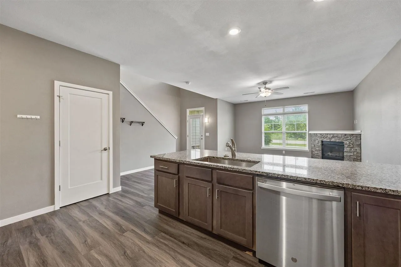 Luxury Churchill Meadows townhome featuring an open floor plan, granite counters, gas fireplace, and beautiful LVP flooring! Primary suite with walk in closet, and convenient upstairs laundry. Fiber internet ready with CAT 5E ethernet wired throughout, ready for gigabit speeds! Pre wired for multi zone and whole home audio. Oversized garage, pantry, and quick access to I-80!