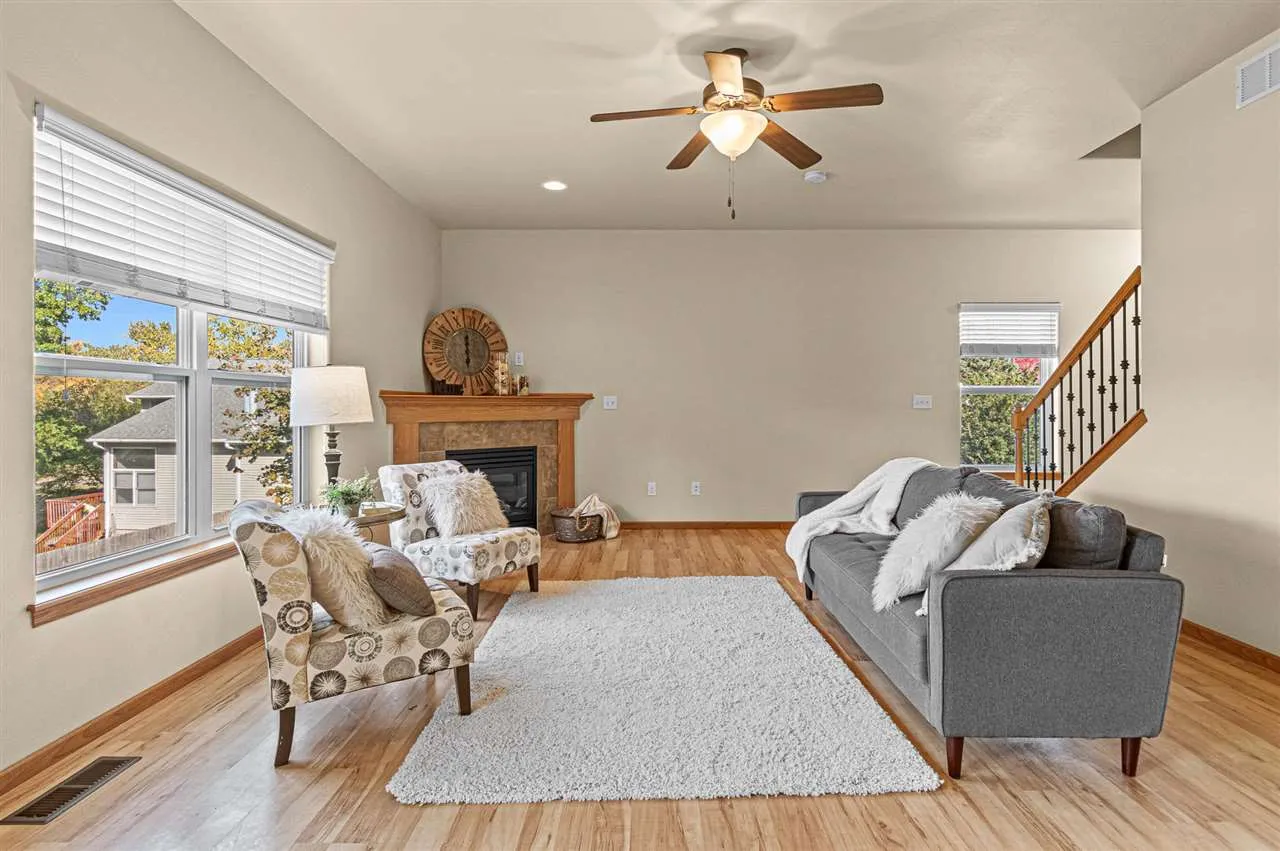 Great two story floor plan with 2000+ finished sq ft of living! On the main level you’ll find a cozy living room with a gas fireplace, a bright dining area that opens to the deck through sliding doors, and a kitchen with sleek stainless steel appliances, breakfast bar & pantry. A convenient half bath completes the main floor. Upstairs, the primary suite welcomes you with vaulted ceilings and a private bath, while two additional bedrooms provide plenty of space. Large hall bath has plenty of room for laundry as well. The lower level features a comfy family room, full bath, fourth bedroom perfect for guests or a home office, and walk-out access to the fenced-in backyard—ideal for relaxing or entertaining. Great Coralville location just 5 minutes from I-80 and a short drive to Costco, Target, Walmart, Coral Ridge Mall, restaurants, and more! This home makes everyday living a breeze. Only 12 minutes from the University of Iowa Hospitals and Clinics, a 10-minute walk to North Ridge Park, and a Cambus bus stop close by!