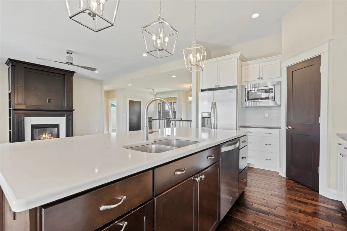 Built by Casey Johannes, this exceptional 5-bedroom, 3.5-bath ranch home perfectly blends craftsmanship, comfort, and contemporary design. A wall of windows floods the main living area with natural light and offers breathtaking views of the community pond and walking trail, while the expansive deck provides the ideal spot for relaxing or entertaining outdoors. The open-concept kitchen is a chef’s dream, featuring quartz countertops, stainless steel appliances, a hood vent, walk-in pantry, and breakfast bar. The master suite offers a peaceful retreat with tray ceilings, private deck access, a spa-inspired bathroom with tile shower, soaking tub, and dual vanities. Two additional bedrooms and a full bathroom complete the main level. The walkout lower level is designed for entertaining and everyday living, featuring a spacious rec room with heated tile floors, plumbing ready for a wet bar, two more bedrooms, and a full bathroom. A 4-stall garage provides ample space for vehicles, storage, or hobbies. This home has a lot to offer, schedule your showing before it’s too late!