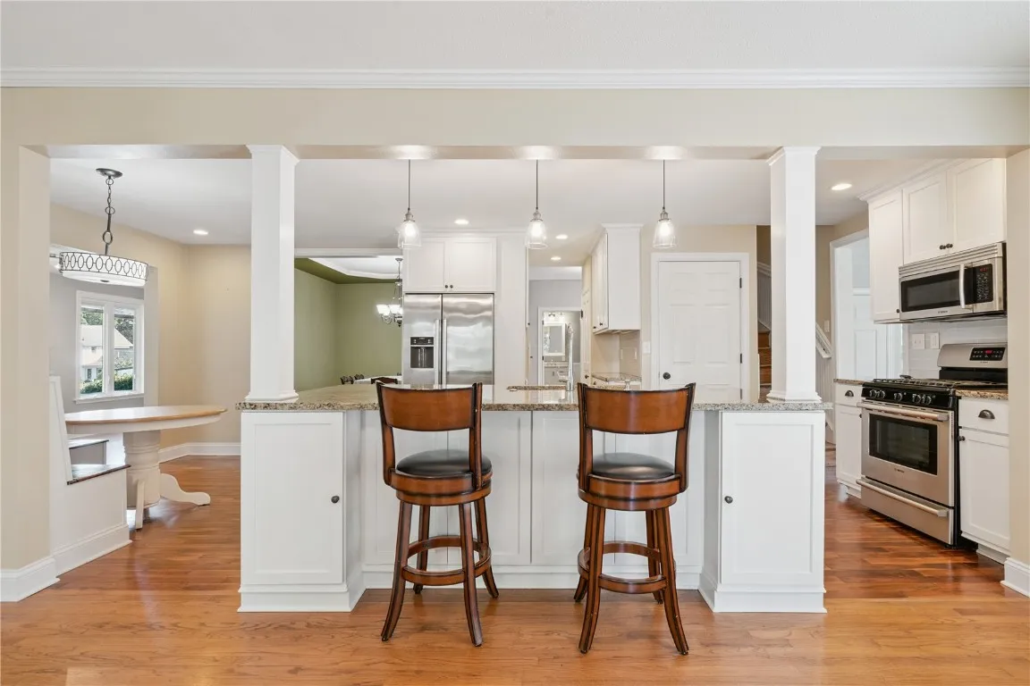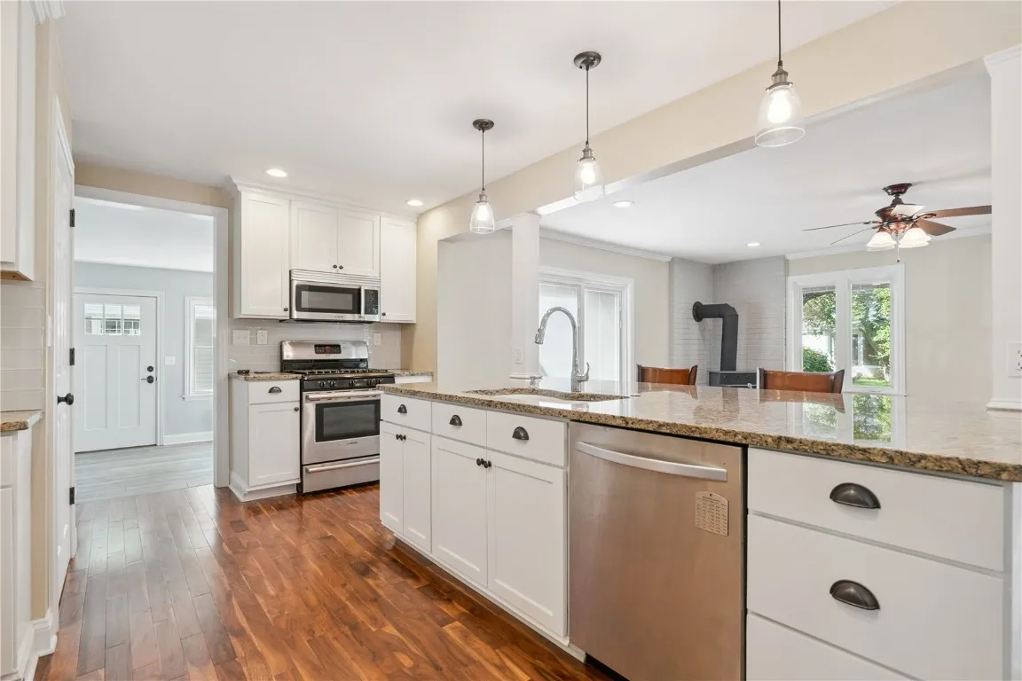 If you are looking for a small town within walking distance of Cornell College, 3 historic districts, with a 2000+ square foot updated home on a large lot with mature trees this may be just the home for you! Solid built in 1915 but with every imaginable professionally built upgrades for todays active family. Maintenance free vinyl siding, all new energy efficient, easy to clean vinyl windows throughout. Original hardwood floors in 3 bedrooms & formal dining room, ¾” hardwood Acacia in kitchen, hall & den, with waterproof, durable, easy maintenance LVP floors in high traffic areas. Open first floor with professional custom cabinets and drawers in the kitchen with Bosch appliances, granite countertop island with divided farmhouse sink for informal eating or sit around the round table at the banquette with storage seats. Prepare meals while visiting with guests & family adjacent to the family room with woodburning stove. Formal dining room has tray ceiling with adjustable lighting. The den has windows, custom shelves & desk. The 1st floor full bath with clawfoot tub & ample cupboards & drawers. Upstairs has 3 bedrooms with original hardwood floors, large windows and full bath with clawfoot tub and walk in shower with 3 showerheads. Clothes chute goes from upstairs to LL laundry. Bath in LL has toilet, shower, sink and Dorothy Door to outside. 280 sq ft garage has floor drain, plenty of light & electric hookups for shop work. Outdoor seating areas include cement patio & bench under the trees.