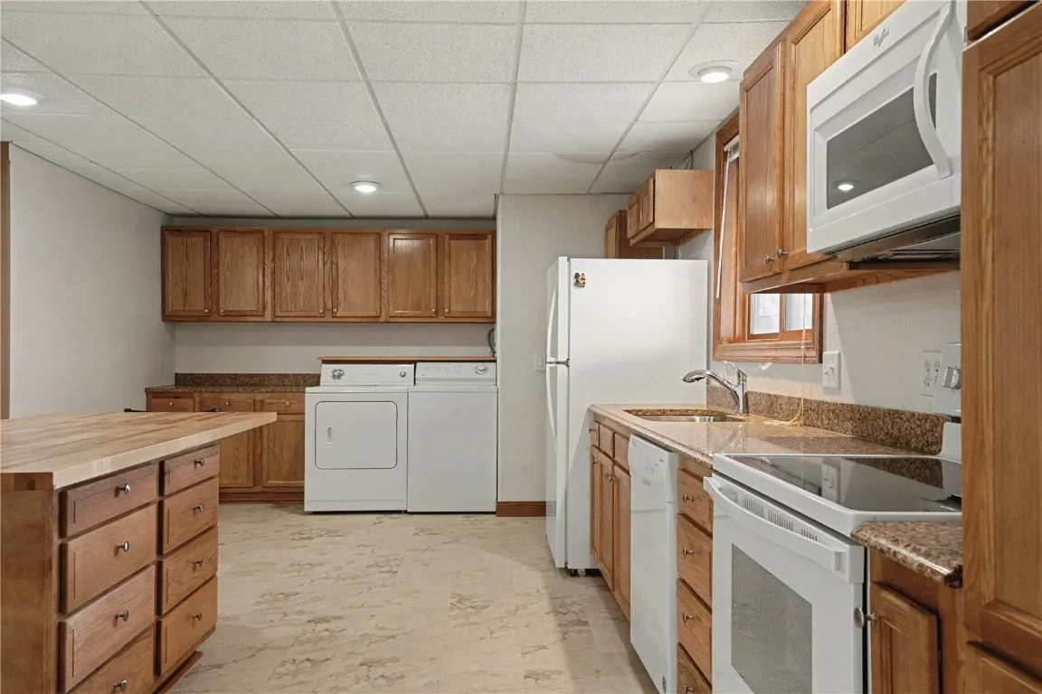 Nestled on 1.25 acres in a peaceful country setting, this spacious ranch home offers over 1,600 sq ft above grade and an additional 1,200 sq ft of finished living space in the walk-out lower level. Recent upgrades include a new roof and gutters, plus in-floor heating for year-round comfort.Step inside to an inviting open floor plan with a cozy gas fireplace in the living room. The main-floor laundry adds everyday convenience. The primary bedroom suite features a large walk-in closet, jetted tub, walk-in shower, and slider doors leading to a private deck overlooking the community pond—perfect for sunrise coffee or evening relaxation, watching the beautiful sunset.The main level includes three bedrooms and two and a half bathrooms. The walk-out lower level provides exceptional flexibility, featuring a full mother-in-law suite complete with a large bedroom, fully functional kitchen, laundry, spacious family room, and a full bathroom with a walk-in shower. There’s also a generous storage area, and the owned water softener is included.Car enthusiasts or hobbyists will appreciate the extra-large, heated two-stall garage with a floor drain and exterior service door. A large parking pad beside the garage accommodates an RV or additional vehicles.Located on a low-traffic road with just one mile of gravel, the county has approved a spring project to apply a double seal coat, effectively making the road hard-surfaced—a plan supported by all association homeowners.This property offers space, versatility, and comfort both inside and out. A rare find—don’t miss the opportunity to call it home!