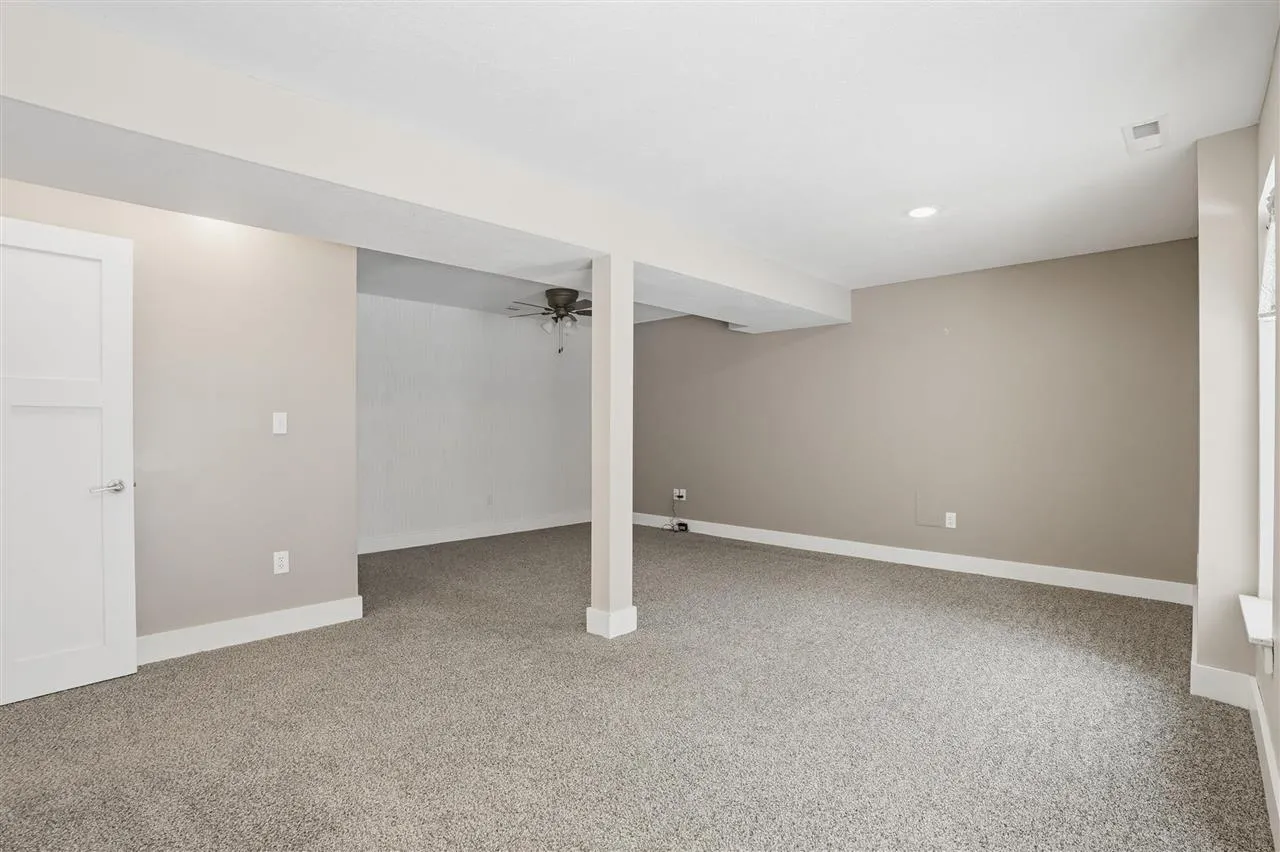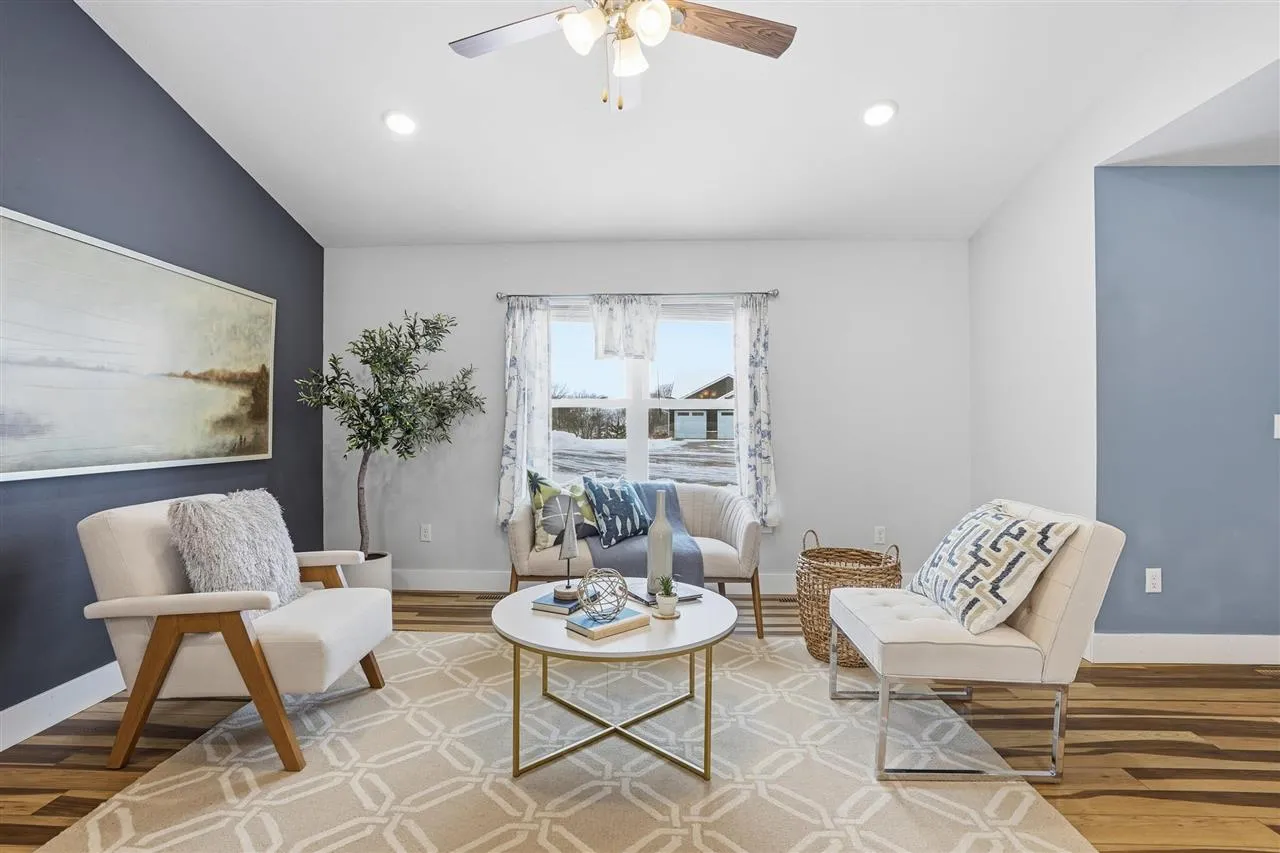 Beautifully updated ranch home on a quiet cul-de-sac backing to mature trees! Step inside to a bright, open-concept main level with vaulted ceilings and stunning newer LVP floors throughout. The spacious living room features an accent wall and large front windows that fill the space with natural light. The kitchen offers crisp white cabinetry, stainless steel appliances, tile backsplash, quartz counters, breakfast bar seating, and plenty of prep space—perfect for everyday cooking and entertaining. Just off the kitchen, the dining area opens to the back deck overlooking a peaceful, wooded backyard. The main level includes a generous primary suite with walk-in closet and private bathroom, plus 2 additional main-floor bedrooms, a full bathroom & main level laundry. The walkout finished lower level offers an incredible amount of additional living space. A large family/rec room provides the perfect setup for movie nights, a game area, or a home gym. Lower level also includes two spacious bedrooms one with a large walk-in closet. Outside patio doors you will find a fenced yard, recently installed patio and extensive hardscaping added with a circular brick seating area with a fire pit, retaining walls, landscape beds and stone stepper path. 2 car attached garage. A well-cared-for home in a great location—move right in and enjoy!