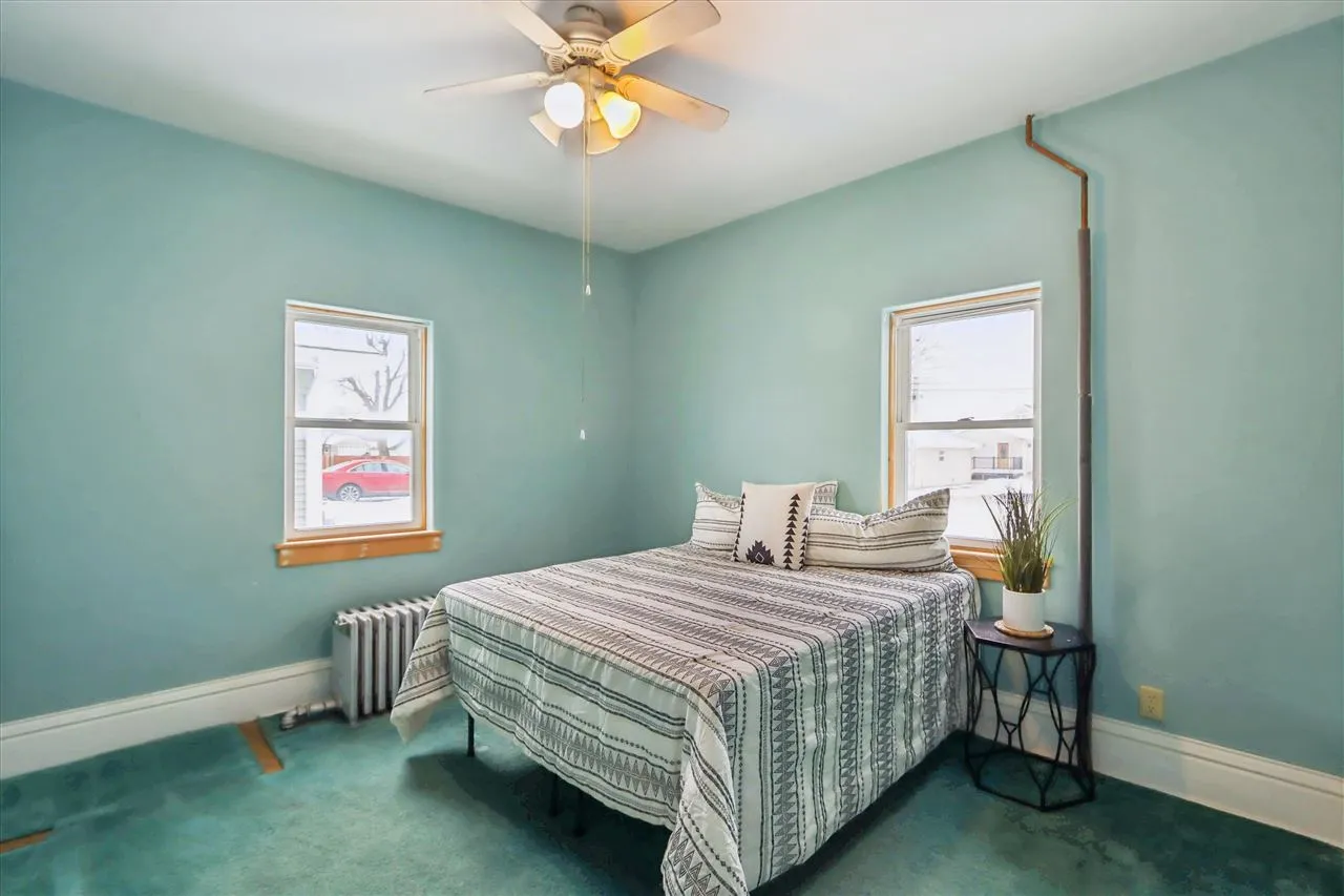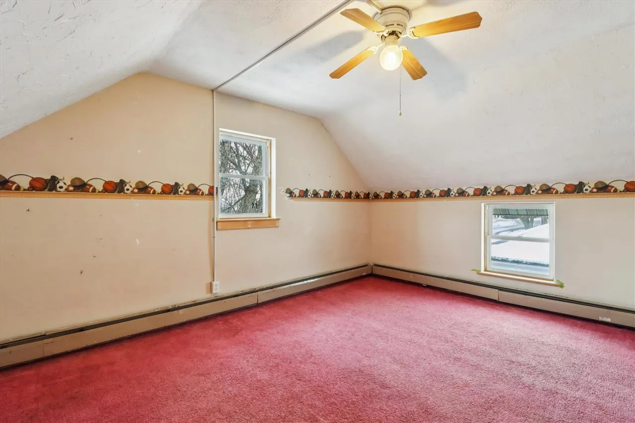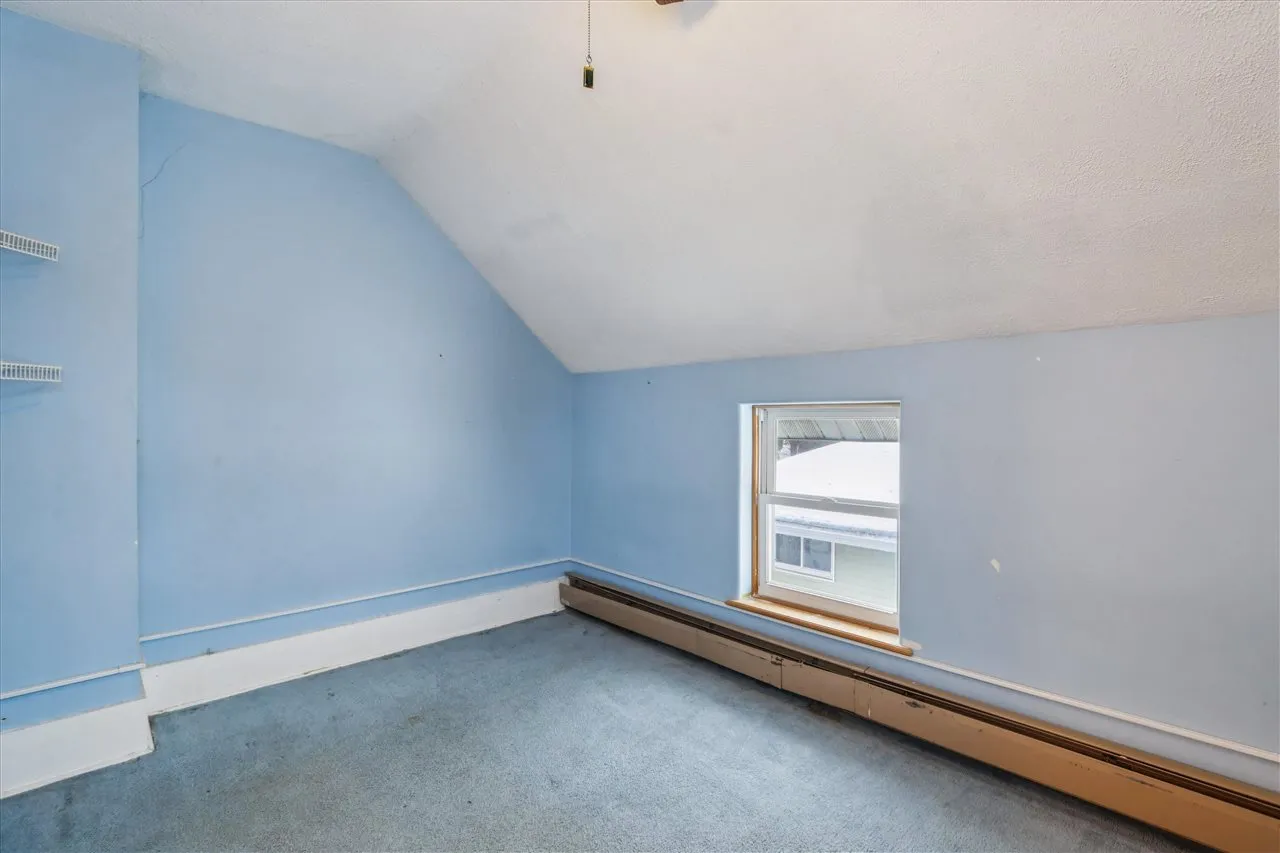 Spacious two-story home features 4 bedrooms and 2 bathrooms offering wonderful features that add to its charm and functionality including tall ceilings and thick trim throughout. The enclosed front porch serves as a versatile area for relaxation or as a practical drop zone for belongings. With many updated windows, the interior receives plenty of natural light, creating a bright and welcoming atmosphere. The bay window in the private living room is a lovely touch, enhancing the appeal of the space. The main level bedroom provides convenience and flexibility. The kitchen is well-equipped with ample cabinetry, appliances, window above the sink, and a dining nook for casual meals. The RO water filtration system adds a modern touch. Main level laundry room with washer and dryer included simplifies daily routines. The main level full bathroom with a brand new toilet and tub shower offers comfort and functionality. The spacious upper level boasts three bedrooms, an oversized full bathroom with a vanity, tub, shower, linen closet, and attic storage. The impressive 40×30 outbuilding built in 2019 with concrete floor and two overhead doors is sure to be a valuable asset, offering additional storage, parking or workspace options. Notable updates include water heater 2024 and boiler 2022. Property being sold AS-IS.