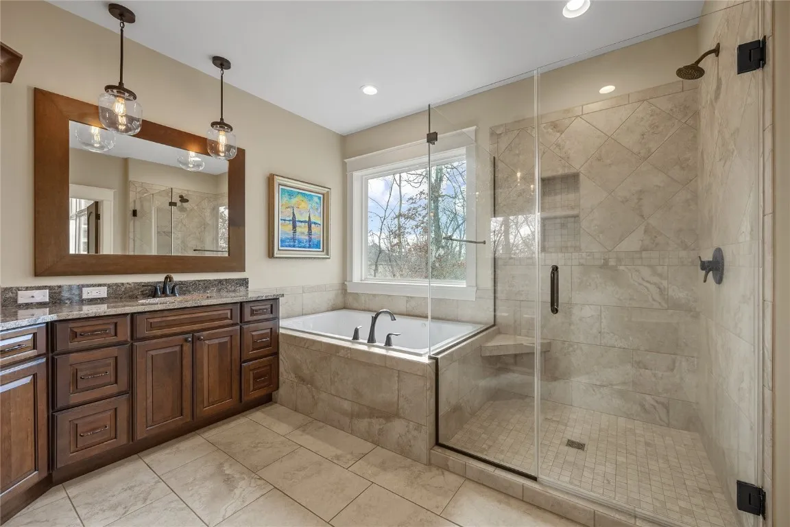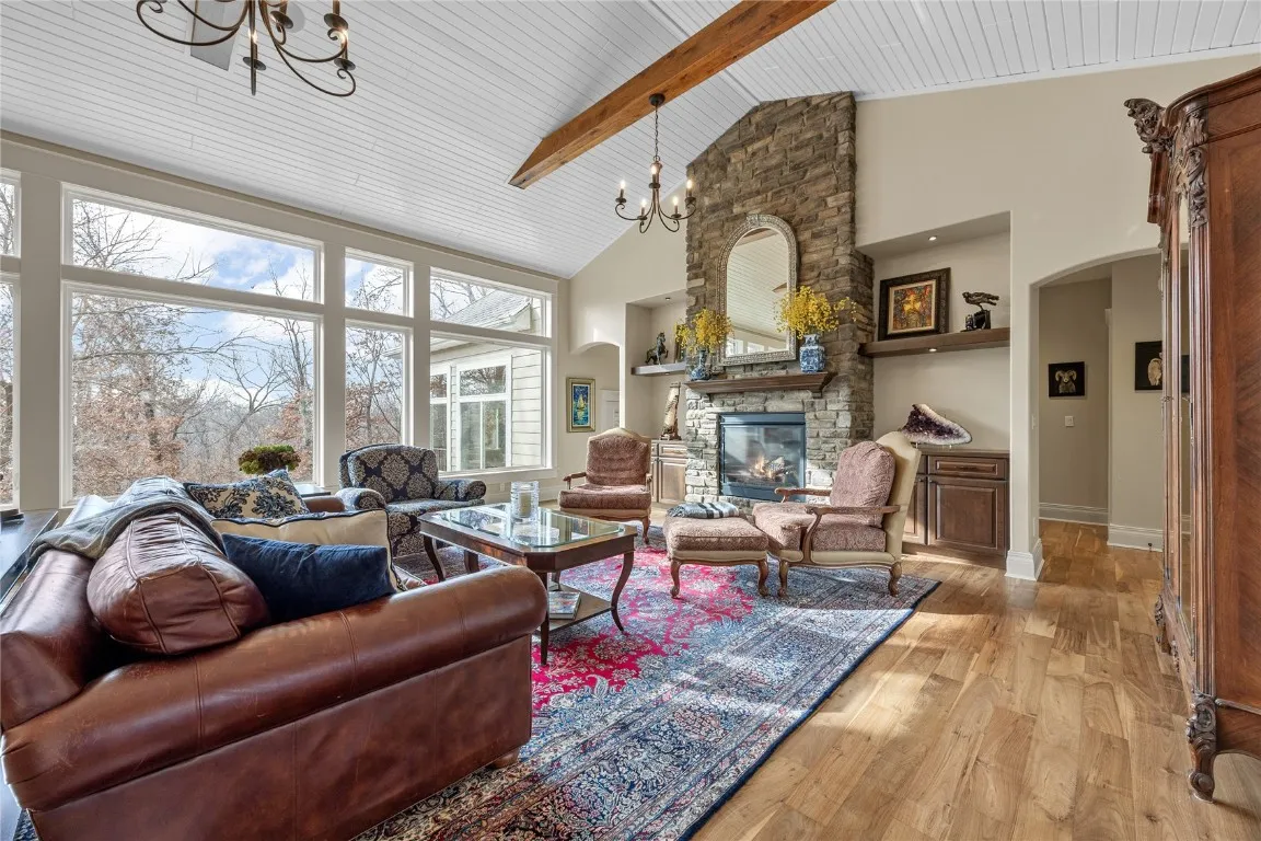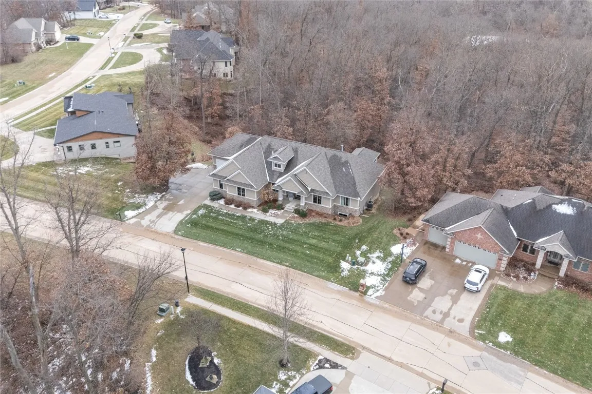 Built in 2014 and set on a private 0.719-acre wooded lot, this luxury ranch home in the exclusive Keystone on Lakeside neighborhood on the SE side of Cedar Rapids delivers the perfect blend of upscale design, space, and privacy. With over 4,800 square feet, this 6-bedroom (3 on main level and 3 in lower level), 3 full bath, 2 half bath home features LP Smart siding with partial stone exterior, new front door, cased windows, exceptional craftsmanship, a 3-stall garage with floor drains and additional concrete parking, and a 5-year-old roof, offering both style and peace of mind. Inside, soaring vaulted ceilings with wood beams, walnut hardwood flooring throughout most of the home, and tons of natural light from expansive windows create a warm yet dramatic first impression. The open-concept kitchen and great room showcase granite countertops with 2-tiered island with breakfast bar, double oven, built-in microwave and a formal dining room. Two gas fireplaces with stone hearths create warmth to the great and rec rooms. Dedicated den/study office on main level. The primary en suite is a true retreat with a custom tiled shower, dual vanities with granite counter tops, private water closet and custom walk-in closet. The walk-out lower level expands entertaining potential with three additional bedrooms, a private theater room, and a heated bar area with in-floor heating, each lower-level bedroom and the theater room equipped with individual electric heat and thermostats. Outdoor living is unmatched with a 3-season porch, deck, patio, hot tub, and formal fire pit, all surrounded by mature trees for exceptional privacy. Enhanced by a security system, whole-home sound system, and irrigation, this high-end Cedar Rapids home for sale is a rare opportunity to own a luxury ranch with walk-out basement, premium finishes, and resort-style amenities in one of the area’s most sought-after neighborhoods.