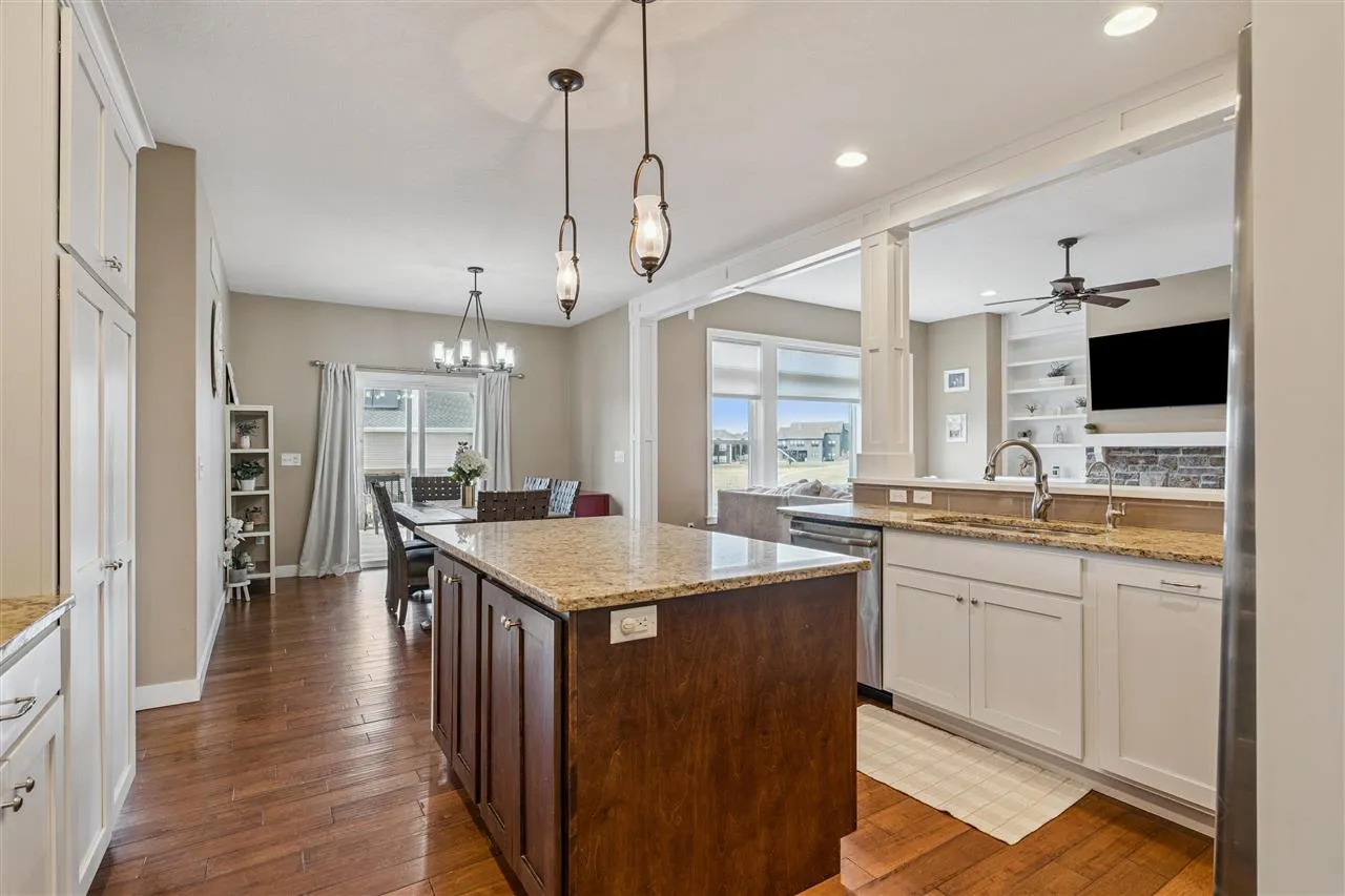 Welcome to this stunning walkout ranch home, thoughtfully designed for both comfort and style. As you step inside, you’ll be greeted by an inviting great room adorned with gorgeous custom built-ins, soaring 10-foot ceilings, and large windows that flood the space with natural light. The main level boasts elegant wood flooring, seamlessly connecting the living areas. The kitchen and dining combo features a generous island, pantry, stainless steel appliances, including a gas range and beautiful subway tile adding a stylish touch. Step outside to the expansive screened-in porch with easy access to the fully fenced backyard, perfect for outdoor activities. Convenience is key with a main-level laundry room and drop zone equipped with built-in lockers, providing easy organization right off the garage entry. Retreat to the luxurious primary en suite, where a 10-foot trey ceiling enhances the spacious feel. Indulge in the spa-like bathroom featuring a tile shower, soaking tub, and a generous walk-in closet. The incredible lower level is designed for versatility, showcasing a large family room boasting a wet bar for entertaining. Completing the basement are two spacious bedrooms, a third bathroom, an additional bonus room and large storage room. Located in the highly desirable Arlington Ridge development! Set up your showing today!