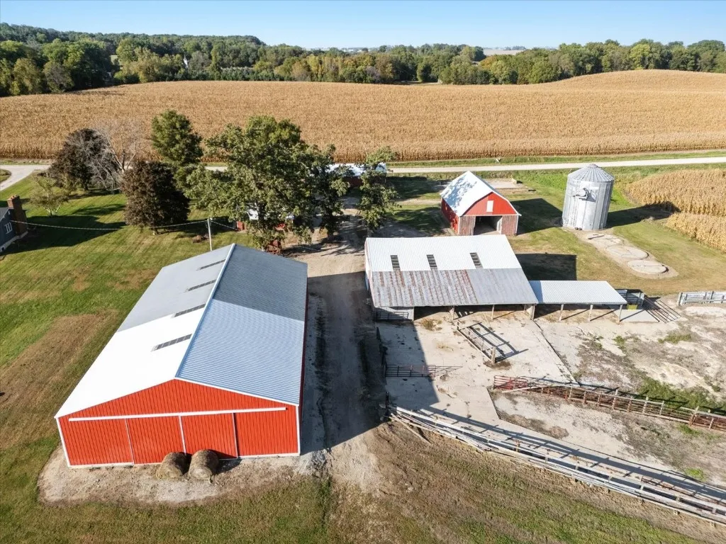 The site includes an extremely large machine shop with a concrete floor, ideal for hobbies, equipment, or workshop use, along with several additional well-kept outbuildings providing abundant storage and flexible use options. The layout allows ample space for a custom home while preserving separation between living space and shop/storage areas.