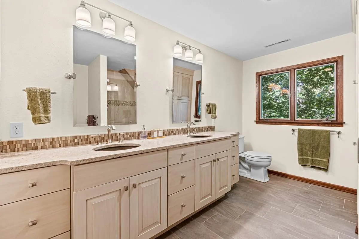 Don’t miss this amazing home on a wooded acreage, nestled in the trees but minutes from downtown Iowa City, Coralville and North Liberty. This home has been well cared for where the new owners have done some amazing updates including cement board siding and there is a new roof with 50 year shingles. You will be happy to find new windows in the 3 seasons room allowing wonderful views of this wooded acreage. Wood floors in the main level and upstairs, except for the bathrooms which have heated tile flooring. The main living room has built in bookcases and cabinets, woodburning fireplace and a reading nook overlooking the woods. The wood fireplace is faced with bricks from the original Burlington St. Main floor family room with huge window overlooking the woods to the front. The kitchen has been updated with cherry cabinetry and solid surface countertops, and a large breakfast area. The formal dining room is spacious and has sliding glass doors to the 3 seasons porch. Two primary suites bookend the upper level. The original suite has dual walk in closets and character with the dormer windows. The new primary suite has an unbelievable walkin closet and en suite bath. The other two bedrooms are great for an office setup. The lower level has recreation room with sauna, in addition to a workshop.
