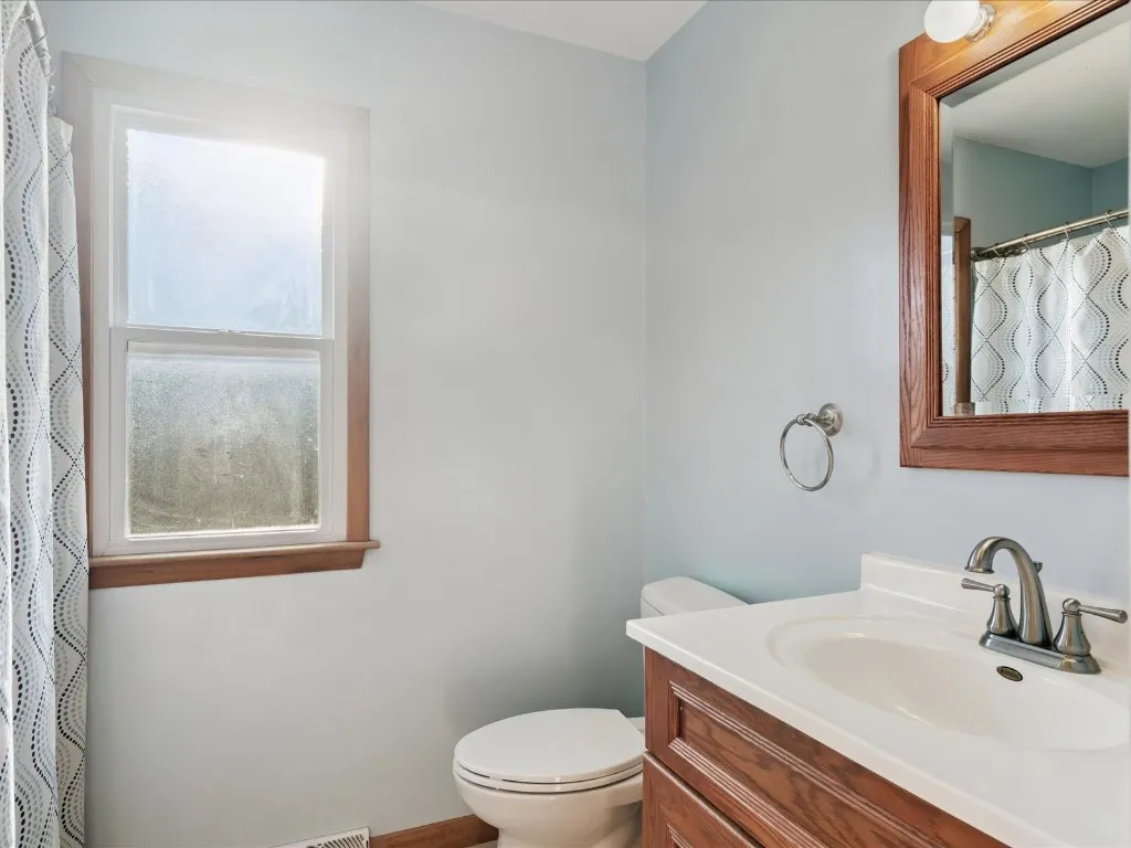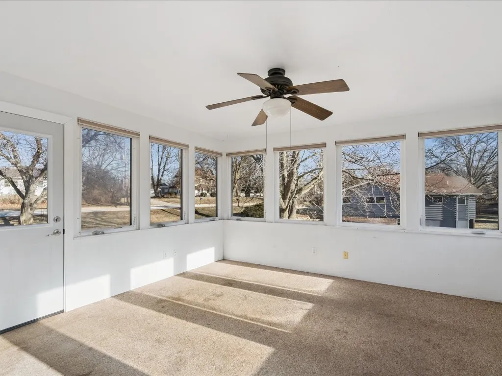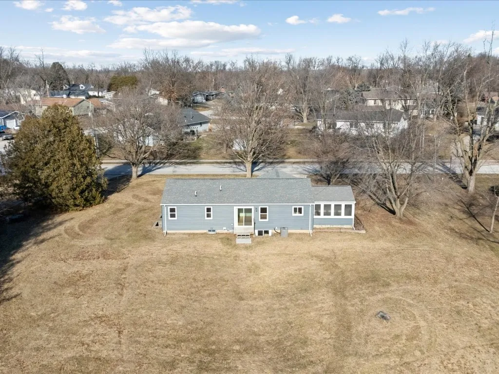 Situated on a rare one-acre lot within town, this charming ranch home offers exceptional curb appeal and a private backyard with no home directly behind it. The expansive yard provides space to relax, entertain, and even enjoy a perfect sledding hill during snowy winters. Step inside the spacious living room filled with natural light from a large picture window, creating a warm and welcoming atmosphere. An open walkway leads to the kitchen and adjoining dining area, where a sliding glass door offers easy access to the backyard—ideal for both everyday living and outdoor entertaining. The main level features two comfortable bedrooms, a full bathroom, and a bright four-season room adorned with numerous windows, creating a peaceful retreat to enjoy year-round. The finished lower level expands the living space with a generously sized recreation room, a cozy nook area for reading or games, two additional bedrooms, a full bathroom, and a dedicated storage area. A one-stall attached garage completes this inviting home, offering comfort, space, and privacy in a desirable in-town setting.