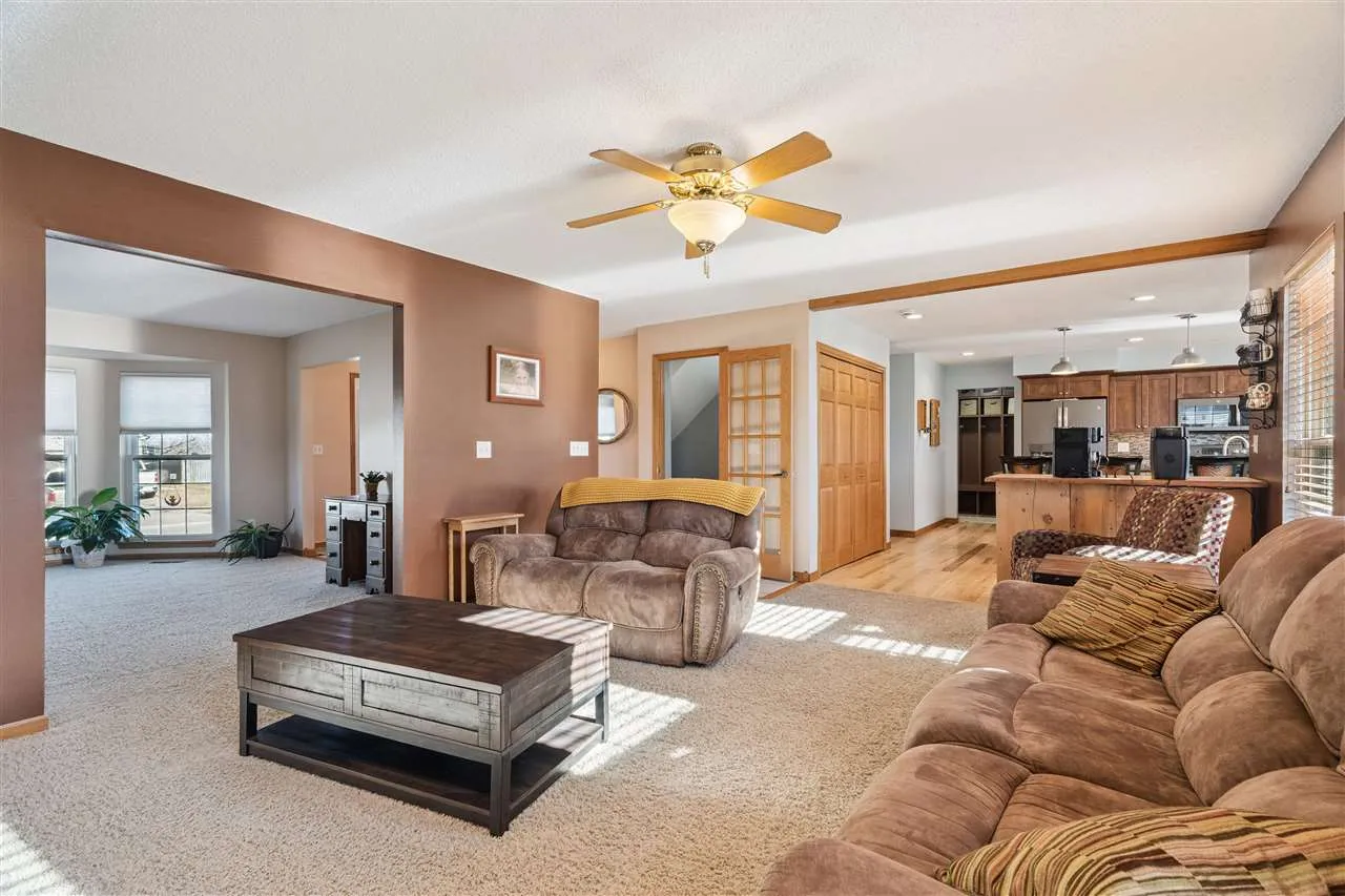 Welcome to this beautifully maintained 6-bedroom 3.5-bath home located in the desirable Stoney Point neighborhood. Offering over 3,700 square feet of comfortable living space, this home features an open and inviting layout perfect for both everyday living and entertaining. The bright and spacious living area flows seamlessly into the kitchen/dining area, complete with updated appliances, quartz countertops, an 11 foot island, a spacious pantry, and ample storage throughout. The primary bedroom offers a relaxing retreat with ensuite large tile shower, soaking tub, as well as dual walk-in closets, while additional bedrooms provide flexibility for family, guests, or a home office. The basement offers 2 additional bedrooms and a full bathroom. This is also where you will find another large family room with surround sound, perfect for movie night, as well as your dream wet bar featuring a barnwood backdrop and countertop made out of a bowling lane. Step outside to enjoy the fenced in backyard and large stamped concrete patio with a built-in firepit, ideal for outdoor dining and gatherings. Additional highlights include an oversized 2 stall insulated and heated garage, new roof, new energy-efficient windows, a 10 foot by 10 foot shed with rollup door, and a 22kw Generac generator which will provide power to the whole home
