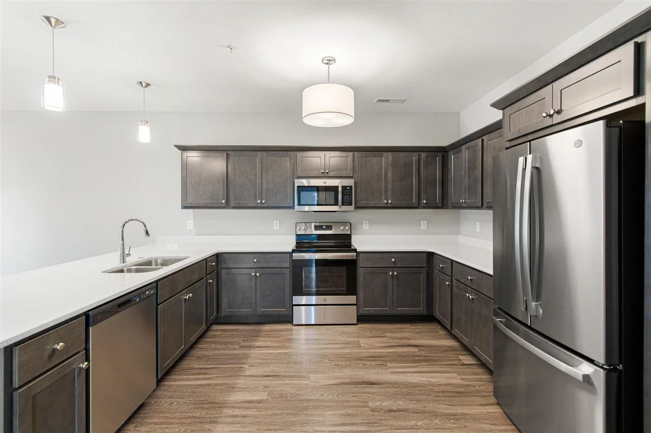 Brand new luxury condos in Coralville! Located near shopping and restaurants with easy access to I-80 and I-380. This stylish unit has two bedrooms and a den. The primary has a private bath and walk-in closet. Large kitchen with granite countertops and LVP flooring. Electric fireplace and spacious deck. Laundry off kitchen with washer and dryer included. Elevator, underground parking and high speed internet are also included! *All Photos of Similar Property* **Finishes will be different**