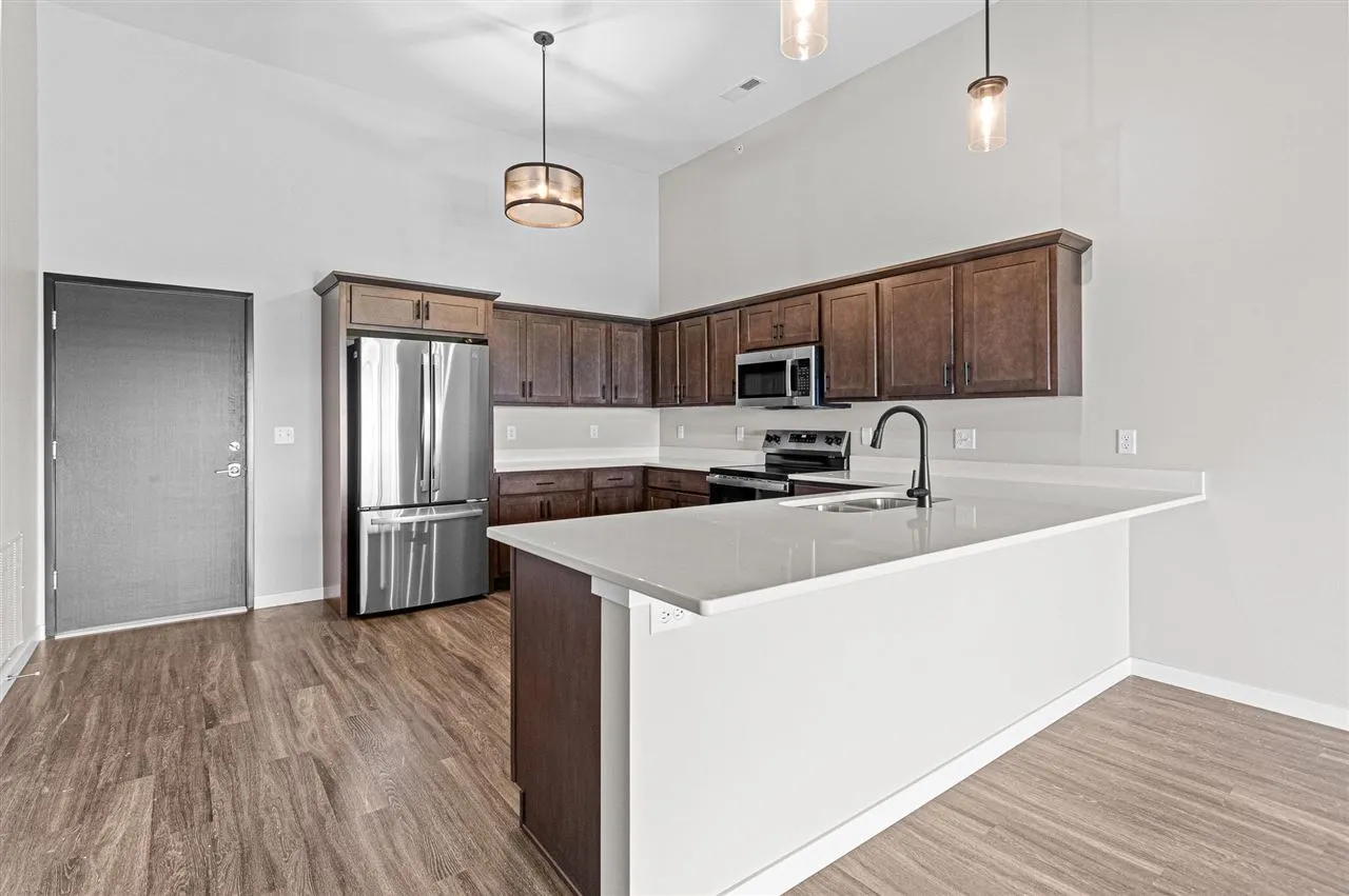 Brand new luxury condos in Coralville! Located near shopping and restaurants with easy access to I-80 and I-380. This stylish unit has two bedrooms. The primary has a private bath and walk-in closet. Large kitchen with granite countertops and LVP flooring. Electric fireplace and spacious deck. Laundry off kitchen with washer and dryer included. Elevator, underground parking and high speed internet are also included! *All Photos of a Similar Property.* **Finishes will be different**