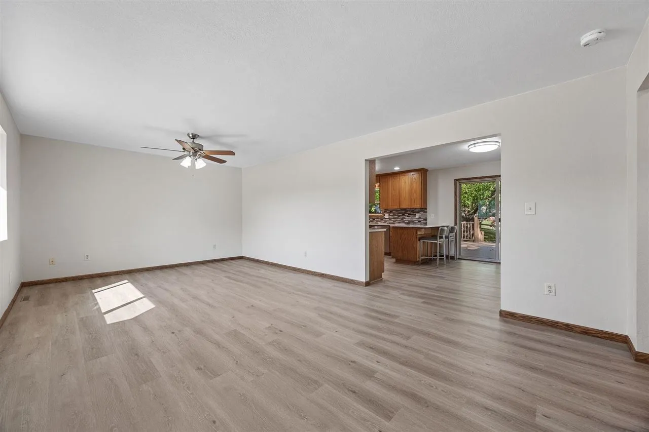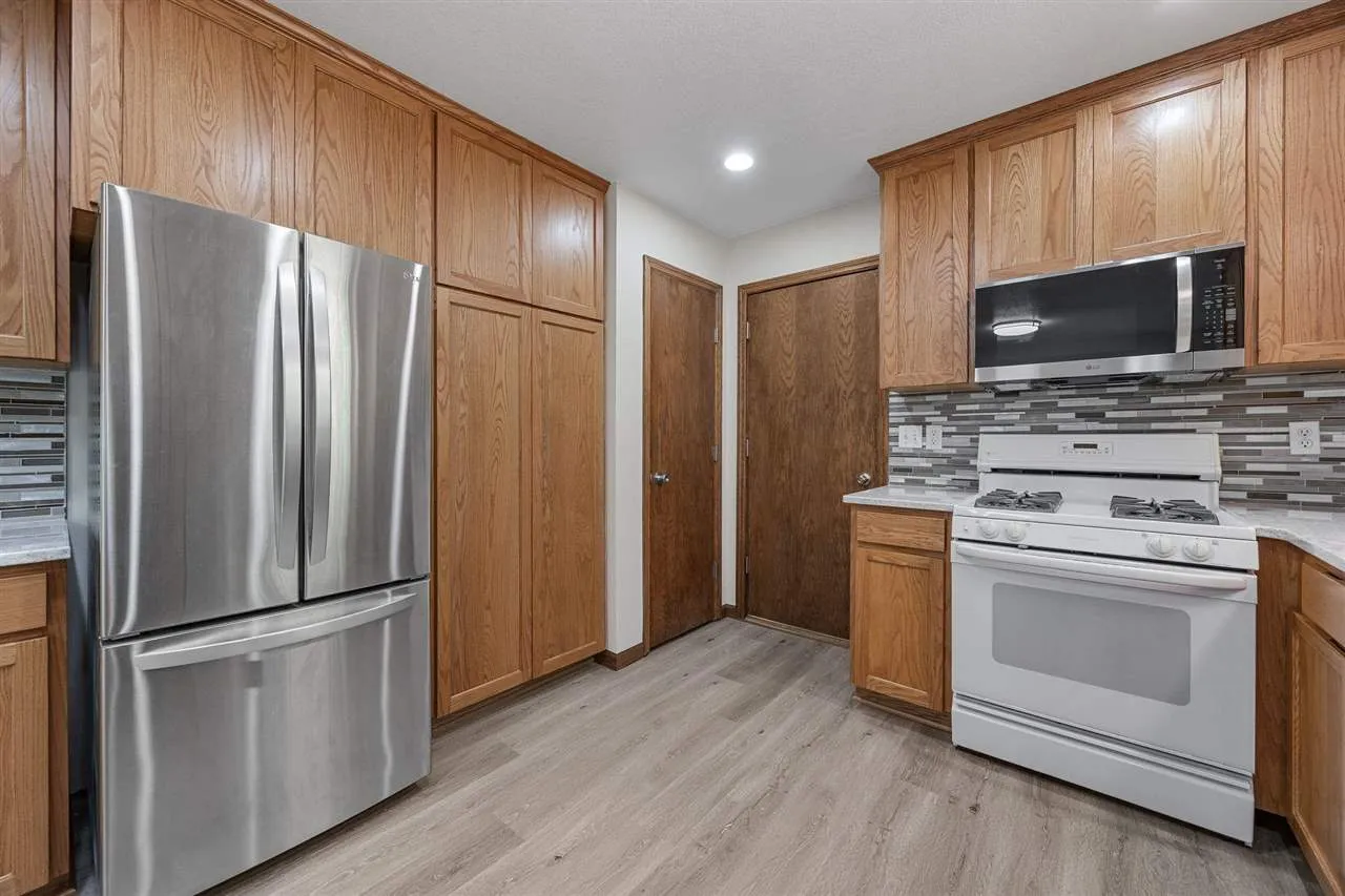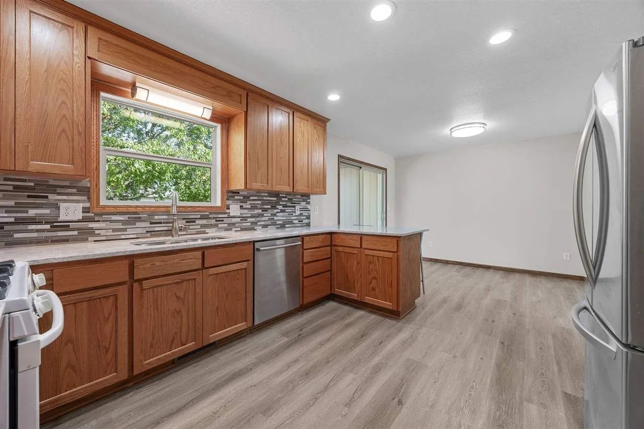 This updated five-bedroom, three-bath ranch home sits on over 1/3 acre in a peaceful, park-like setting. Located close to Kinnick, UIHC, I-380, and public transportation, it offers great convenience. Recent updates include new windows, a patio door, quartz countertops, backsplash, microwave, disposal, and updated bathrooms. The home features new flooring throughout, modern light fixtures, new door knobs, new front siding, freshly painted exterior and interior walls, gutters, downspouts, and electrical updates. In 2023, a new furnace and A/C were installed. The spacious lower level boasts a large family room with a fireplace and walkout to the backyard, along with a sizable storage/utility room. The primary bedroom has a private bath and a large cedar walk-in closet. Washer and dryer hookups are conveniently located on the main level hall closet next to the primary bedroom, with additional hookups in the lower level. An expansive deck overlooks the backyard, perfect for outdoor activities. This well-maintained home combines modern upgrades with plenty of space, making it a great place to call home.