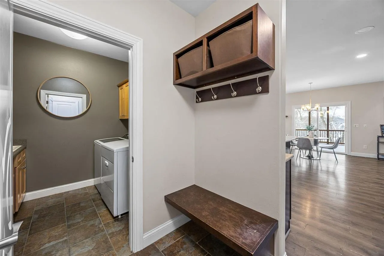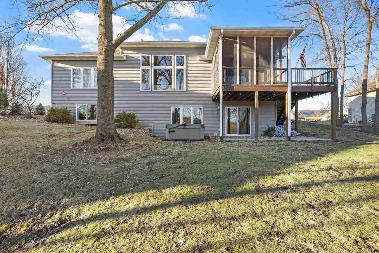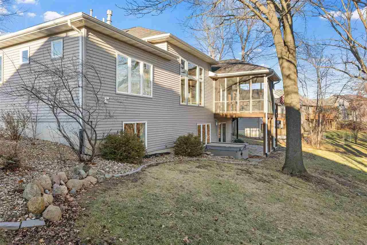 Gorgeous brick ranch home in the popular Cedar Springs neighborhood. Wooded backyard and a flat outdoor space—close to Coralville Lake with easy access to Iowa City and Cedar Rapids. Connected to nature while still close to everything. Inside, you’ll find an open floor plan with 12’ ceilings, expansive windows, and bamboo hardwood flooring. The living room centers around a stone fireplace with built-ins. The kitchen has a large granite island, cherry cabinetry, walk-in pantry, and a gas stove. Each space offers room to gather with the dining room easily seating twelve. Convenient drop zone, half bath, and laundry room with washer, dryer, and utility sink are just steps away. The screened-in porch with adjoining grill deck extends your living space outdoors—perfect for quiet mornings or entertaining. The primary suite offers a true retreat: soaking tub, walk-in tiled shower, and radiant floor heating. Two additional bedrooms and a full bath complete the main level. Downstairs is spacious and perfect for movie nights in, featuring a wet bar, two more bedrooms, a full bath, and walkout access to the patio and backyard. Enjoy wooded views, green space, and a peaceful setting. Roof replaced in 2025, new water heater in 2025. Bullfrog hot tub stays with the property. New screens in screened porch. Washer and dryer stay with the home.