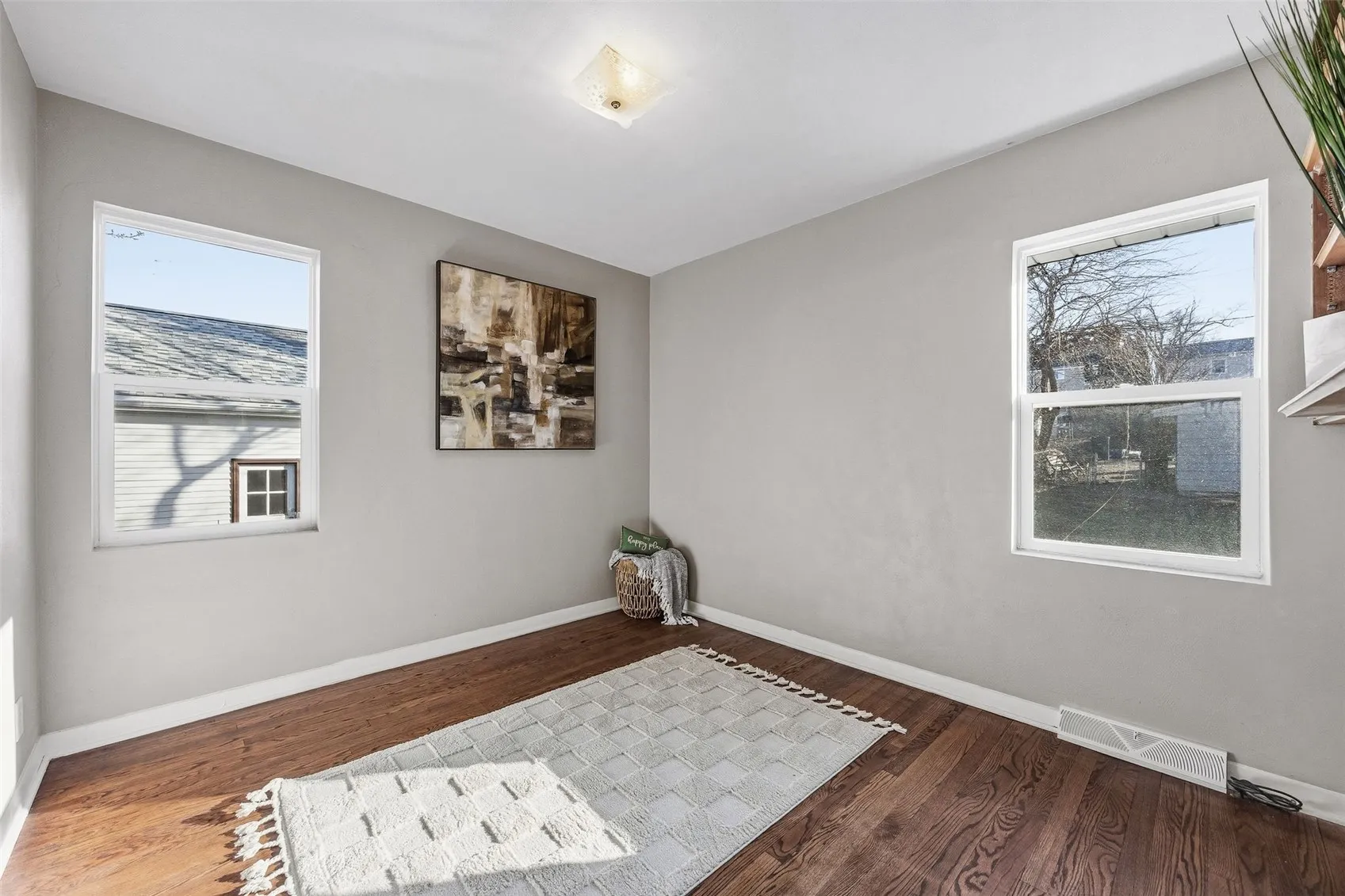 Adorable home with many updates and just a few small touches to make it your very own home. New flooring in the kitchen/dining, living room and bath along with refinished hardwood flooring in the 2 main level bedrooms and hallway. The 2nd floor offers a huge room to make your 3rd bedroom with dual closets. Updated vinyl siding, roof, new windows add even more value! The lower level offers area for a future rec room, a shop and the laundry.