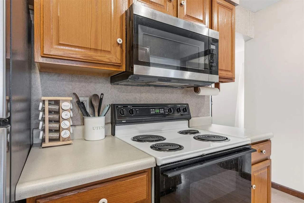 Move in ready! Well-maintained end-unit townhouse. New refrigerator, microwave, washer/dryer, upper level toilet and faucet. Lower level lighting improved w LED. Windows have been replaced w/double-hung windows. ML bath upgraded to full bath. ML bath faucet replaced. Kitchen w/pantry closet, pass through opening to dining rm. Dining/family rm combo. New furnace in 2018. Upgraded Pella sliding door. Huge primary bedrm w/2 closets. UL bath has a linen closet. LL w/rec (family) rm & office w/built-in shelving, safe. Utility room has shelving, peg board. Private fenced patio area. Large green space to enjoy next to the unit. Community garden plot. On assigned parking space and guest parking available. New buyers, at their own expense, can move the fence out to the sidewalk with HOA approval. All attics in association insulated fall 2021. All roofs replaced fall 2023. All fences replaced spring 2023. Attractive association with unique and charming architecture. Freezer and mini fridge is not included.