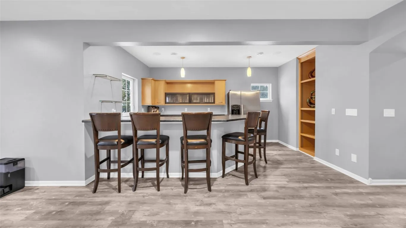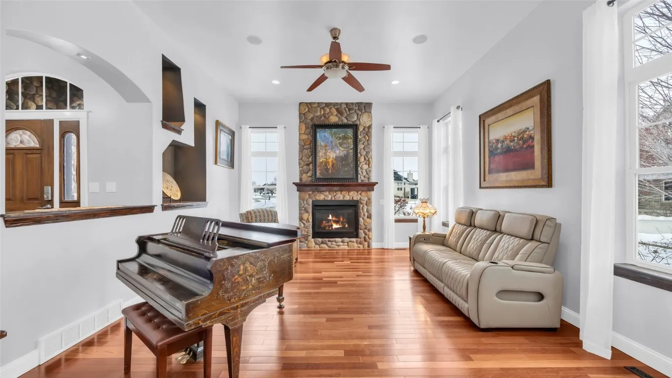 Ideally located in a highly sought-after cul-de-sac, this impeccably maintained Mooney-built custom home in Linn Mar school district is perfectly positioned between the 7th green and 8th tee box of the Hunters Ridge Golf Course, offering serene pond views on just under a half-acre lot. From the moment you arrive, the pride of ownership is evident, making this home truly move-in ready. The open-concept great room is warm and inviting, centered around a beautiful stone-to-ceiling gas fireplace and complemented by fresh, neutral paint that highlights the home’s thoughtful design and abundant natural light. The adjoining chef-inspired kitchen has been tastefully updated with quartz countertops, new backsplash, updated sink, modern fixtures, and new Café appliances, while maintaining timeless appeal with Brazilian cherry wood floors, walk-in pantry, and included appliances—ideal for both everyday living and entertaining. The spacious primary suite offers a private retreat with a spa-like steam shower, double vanities, custom tiled shower, and a generous walk-through closet with convenient access to the main-level laundry, along with direct access to the maintenance-free deck—perfect for enjoying peaceful morning views. Every space in the home reflects meticulous care and attention to detail. The finished lower level is perfect for entertaining or relaxing, featuring two additional bedrooms, a wet bar, and walkout access to the patio and beautifully landscaped yard overlooking the pond, creating an ideal space to enjoy the tranquil golf course setting. Recent major updates provide comfort and peace of mind, including a new roof (2021), new furnace (2023), water heater (2019), whole-home generator, and new garage doors. Additional features include central vacuum, whole-house sound system, lawn irrigation system, and an oversized three-stall garage with extensive overhead storage. This exceptional home has been lovingly maintained and thoughtfully updated throughout—offering quality, comfort, and confidence for the next owner. Ask your agent for the list of updates.