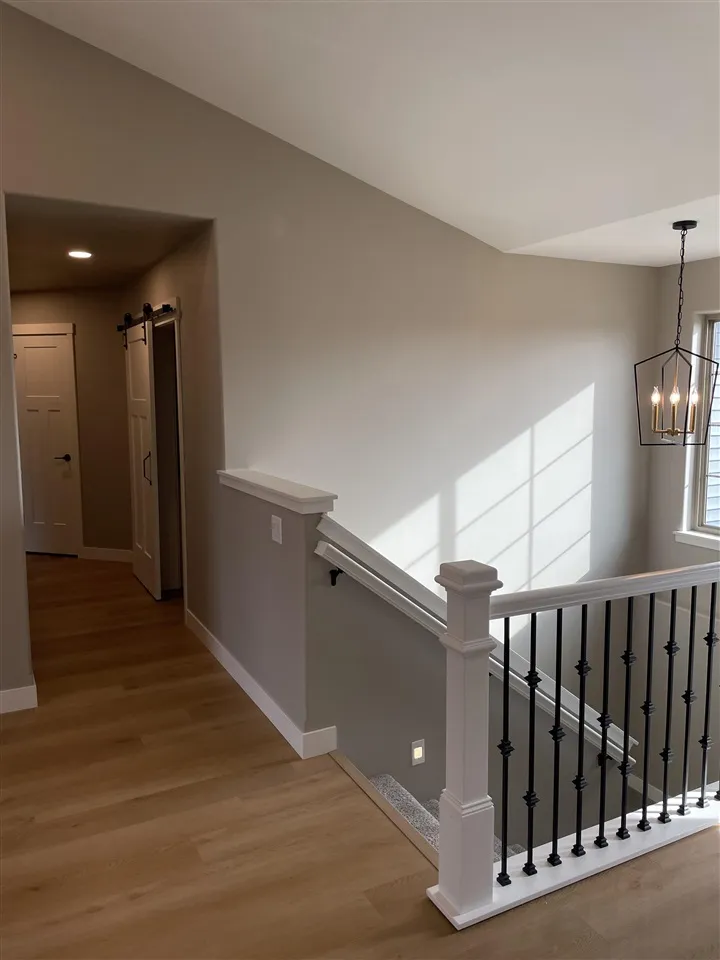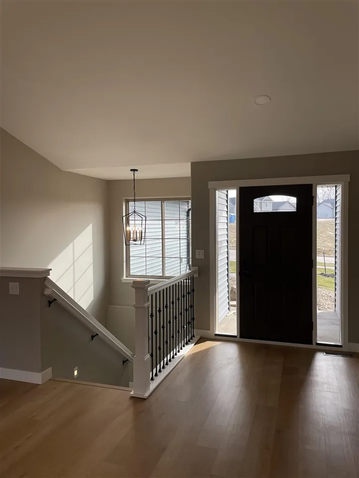 New Construction 5-Bedroom Home with a Walkout Basement. Photos are of a similar property. Estimated Completion is April 2026. Step inside to a bright open-concept floor plan, where vaulted ceilings and large windows fill the space with natural light. The kitchen boasts a large navy island, ample white cabinetry and traditional charm. The dining room provides easy access to a covered deck, offering the perfect space for outdoor dining, morning coffee, or simply enjoying the view of the large private backyard. The primary suite features an ensuite bath, a generous walk-in closet, and direct access to a spacious mudroom/laundry room, adding convenience and functionality to your daily routine Downstairs, the fully finished walkout basement expands the living space and includes a wet bar, 2 bedrooms and a full bathroom. Additional features include a spacious 2.5-car garage, a prime location near schools, parks, and only 10 minutes from downtown Iowa City .
