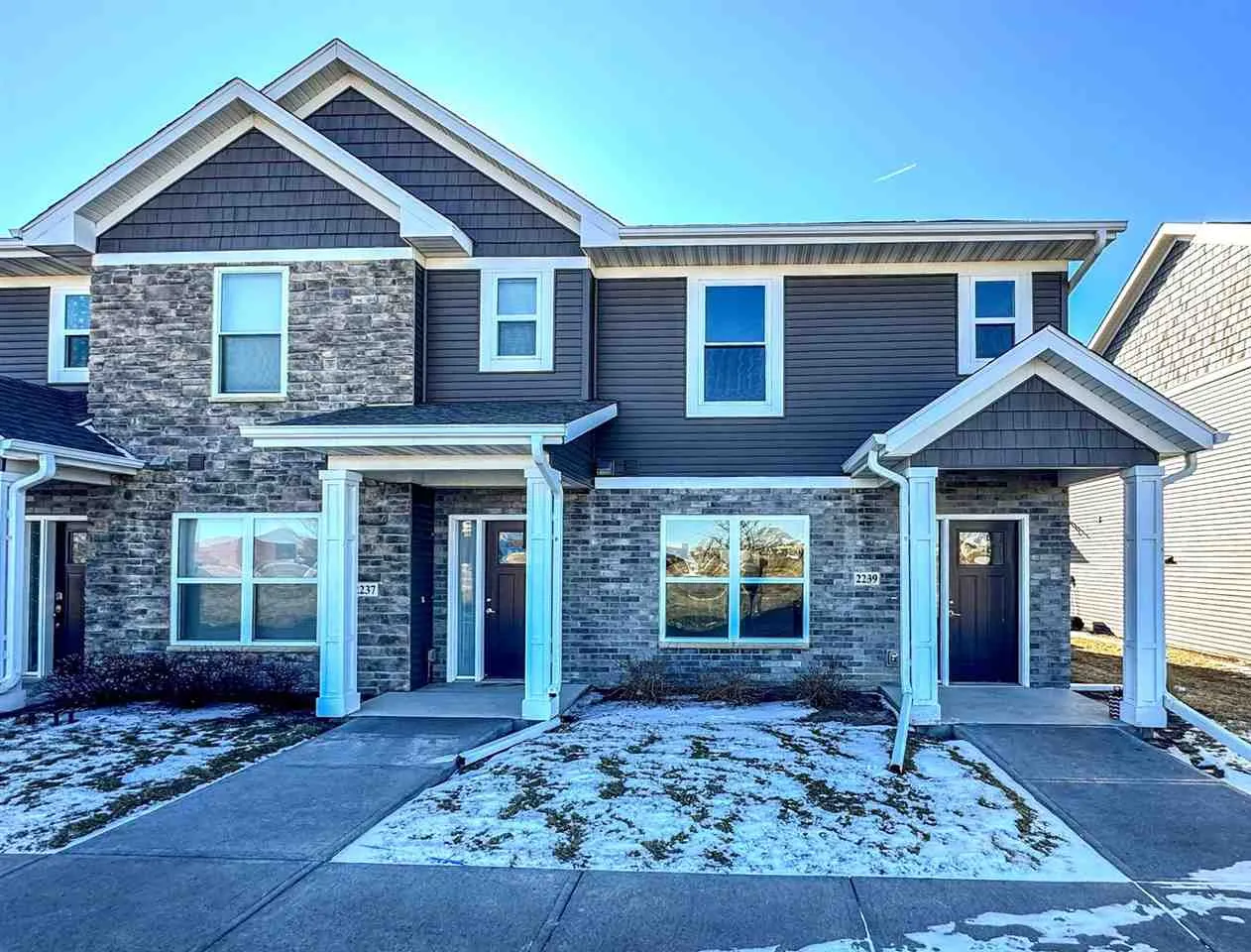 You must see this stylish 2-bedroom, 2.5-bath townhouse with a contemporary design, well-appointed living spaces, featuring a bright open layout, a large, open kitchen with quartz countertops, and ample cabinet space. Upstairs you’ll find 2 generous bedrooms, primary en suite, a full bath and laundry area. This home has plenty of space to live and entertain! Outside you’ll find plenty of greenspaces & walking areas to enjoy! Like brand new construction! Come and see it for yourself today and be moved in by spring! (Some photos digitally enhanced-staged) —