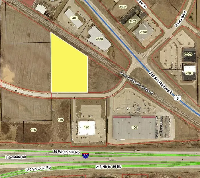 Highly visible lot from Interstate 80. Close proximity to Coral Ridge Mall and dozens of restaurants and retail locations. Coralville’s West Land Use Area Plan calls this Corridor Commercial: retail areas located on collector and arterial streets and characterized by general commercial service uses. City of Coralville must approve your PUD subdivision plans, which should adhere to the West Land Use Area Plan. Buyer to pay impact fees to Coralville upon final platting. Listing agent is manager for seller.