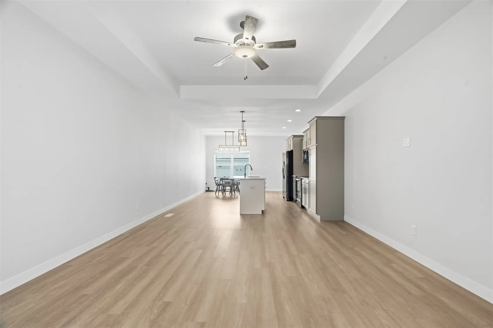 Thoughtfully designed for everyday ease, each bathroom is equipped with ADA-height toilets. The home includes a whole-home humidifier and an owned water softener for enhanced comfort year-round. The kitchen is both stylish and functional, featuring an added 24″ pantry cabinet on the right side of the layout for extra storage, along with all appliances included—refrigerator, range, dishwasher, washer, and dryer—making this home truly move-in ready.