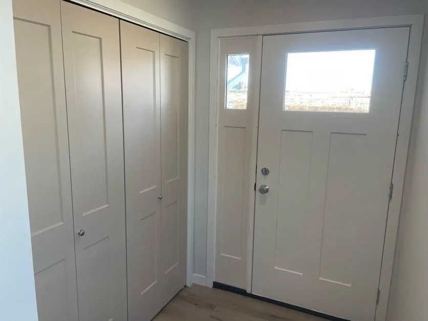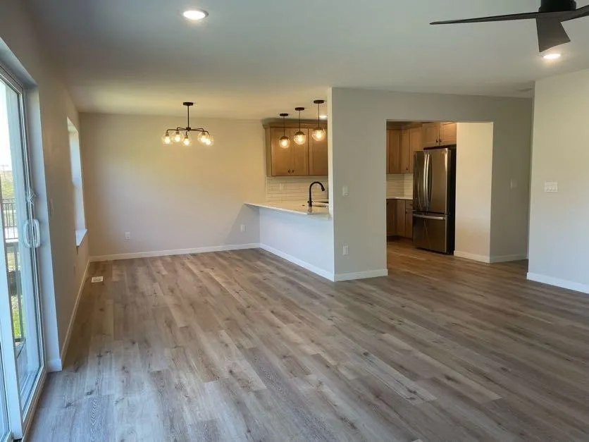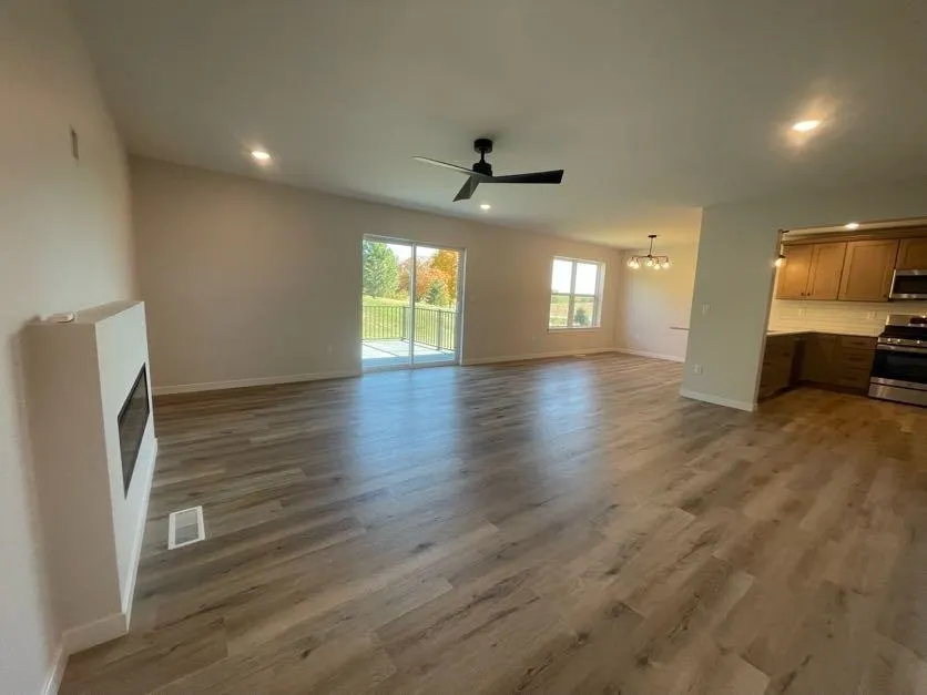 Quality Built by Larson Builders, Inc. This 4-bedroom, 3-1/2 Bath home is a combination of practical yet modern! Walk in to a nice sized entry foyer with a Coat Closet. The 1/2 bath is along the hallway and away from the Living Spaces. The Open Floor plan Living Room also features an Electric Fireplace. The sliding glass door opens up to the 12′ x 12′ Deck with Composite Decking! Large Private Back Yard. Step into the functional Dining Room that’s open to the Spacious Kitchen! The Cabinets and Drawers have the “soft close” upgrade. All the Appliances including a Gas Stove are Stainless Steel from Slager’s Appliances. Quartz Countertop. The Large PAINTED 2-car garage is just a few steps away from the Kitchen for easy Grocery Drop Off! The 2nd Floor is home to the 15′ x 13′ Primary Bedroom, Walk-in Closet plus a 2nd closet along with it’s own Bathroom with separate sinks and a Shower with Tiled walls! The Stacked Washer and Dryer is also conveniently located in the Bathroom area! Down the hall, you have a Storage Closet, another full bath with a Tub/Shower and Built-in Linen Closet & 2-more Bedrooms! The Finished Lower Level opens to the Family Room. Another Full Bath with a Shower and Built-In Linen Closet, LARGE 4th Bedroom and a Utility Room. Storage Under the Steps. 10-min. to Iowa City. Finished Photos of Similar Home.