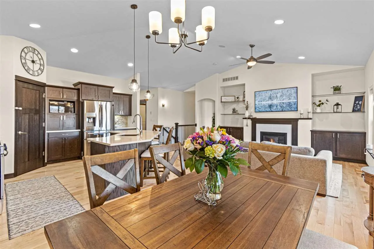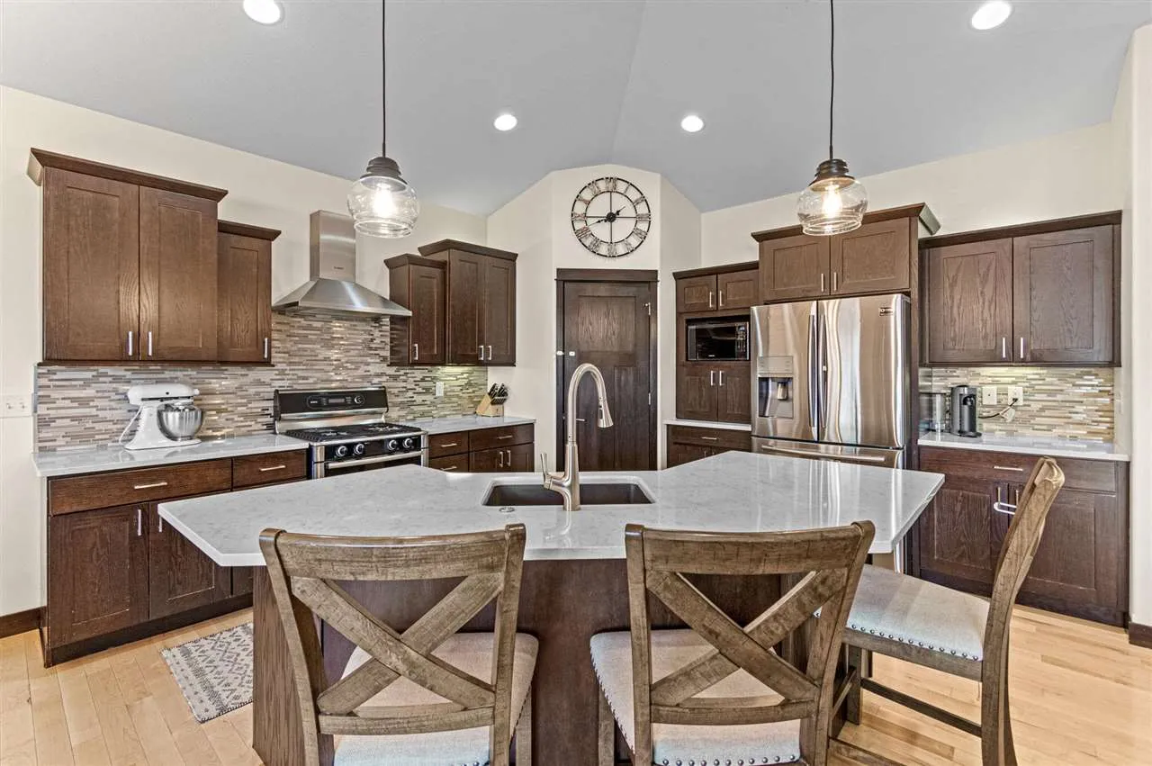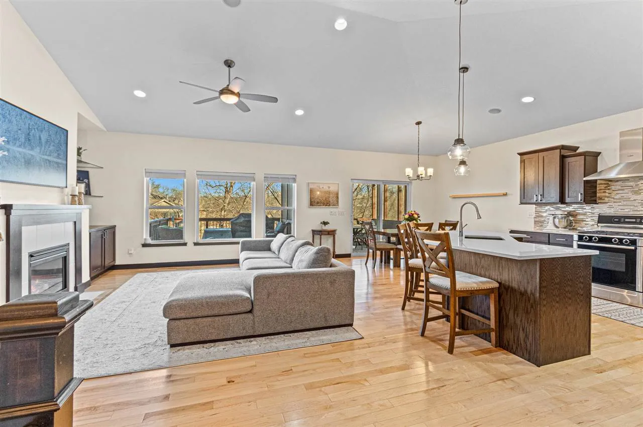 Here is a charming property with extensive landscaping and a fenced backyard complete with play area and a generous side yard. This serene location on a cul-de-sac overlooks a wooded ravine. The 2013 home features an open-concept main level with hardwood flooring, vaulted ceilings and a spacious living area. The gourmet kitchen has granite countertops, stainless appliances, gas range and walk in pantry. The living room is accented with a gas fireplace and built ins. The primary suite has a trey ceiling, large walk in closet and a walk in tile shower. A combination mud room and laundry on the main level has custom built in bench and cubbies and a folding counter. The open lower level is complete with a wet bar, glass doors to the patio and a storage room with plenty of space for your workout equipment. The backyard offers privacy and a comfortable outdoor space with a screen porch, deck and patio. The Hot Tub (2023) will remain with the property for your enjoyment and relaxation. Overall, it’s a lovely blend of comfort and style in a peaceful neighborhood.