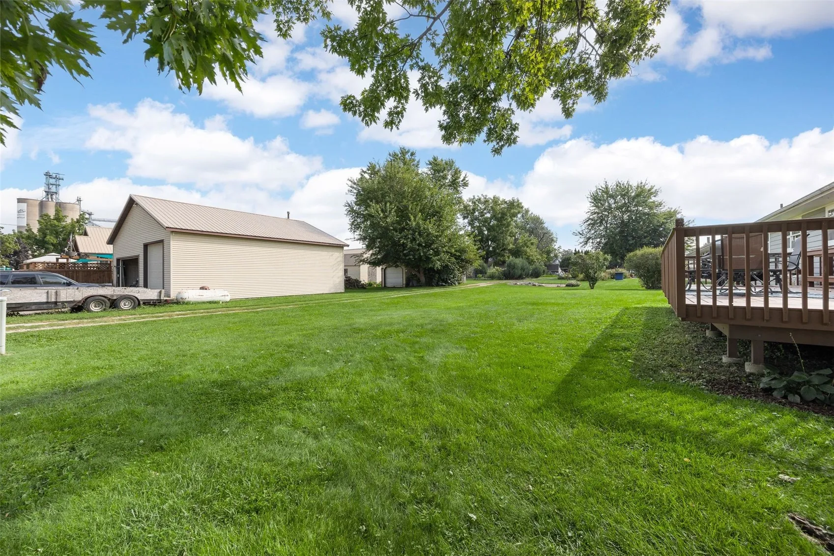 Small town living at its best. This thoughtful floor plan offers main floor living with a large living room, hardwood floors, large front windows to bring in the light. This home boasts a huge kitchen with plenty of room for dining table and coffee bar! Newer huge deck for entertaining and watching the kids play in the huge yard! Nice remodeling includes a custom back splash, updated appliances, counter tops, and flooring. Main floor bathroom is a charmer and done nicely with new surround and flooring, vanity, and paint, The three bedrooms are generous and all have beautiful hardwood floors. Primary has plenty of room for a king size bed! The lower level is just as large as the upstairs, its not currently finished but could be, just needs your touches. This home was freshly painted on the outside, siding is red cedar wood! Its a home that would be great for downsizers or those starting out! Large lot with mature trees and great curb appeal.