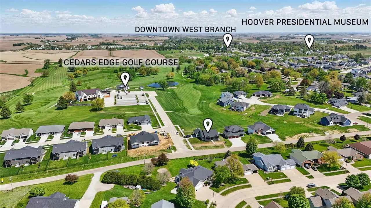 Welcome to this stunning 5-bedroom, 3-bathroom home perfectly situated on Cedars Edge Golf Course with sweeping views of both the course and the pond. Enjoy luxurious main-level living featuring 10-foot ceilings and a gorgeous, cozy stone fireplace in the spacious living room. The gourmet kitchen boasts sleek quartz countertops and top-of-the-line GE Profile appliances, ideal for both cooking and entertaining. Walk right out onto the huge deck, and enjoy one of the best views in the neighborhood! A beautiful primary bedroom has a large walk-in closet and the ensuite offers a heated tile floor, a spa-like walk-in shower, and elegant finishes for a true retreat experience. It has a split bedroom layout with two bedrooms & a full bath also on the main level. The fully finished lower level includes two additional bedrooms, a full bathroom & a stylish wet bar—perfect for guests or entertaining. Walk out the slider to the lower level patio, where you can watch golfers chip in on the #2 green! The two-car garage walks into a fantastic drop zone, with cubbies for all the things. There is a lower-level garage/garden room, ideal for storing your golf cart & mower. With direct access to the course and clubhouse amenities, this home is a rare find that blends comfort, style, and leisure.